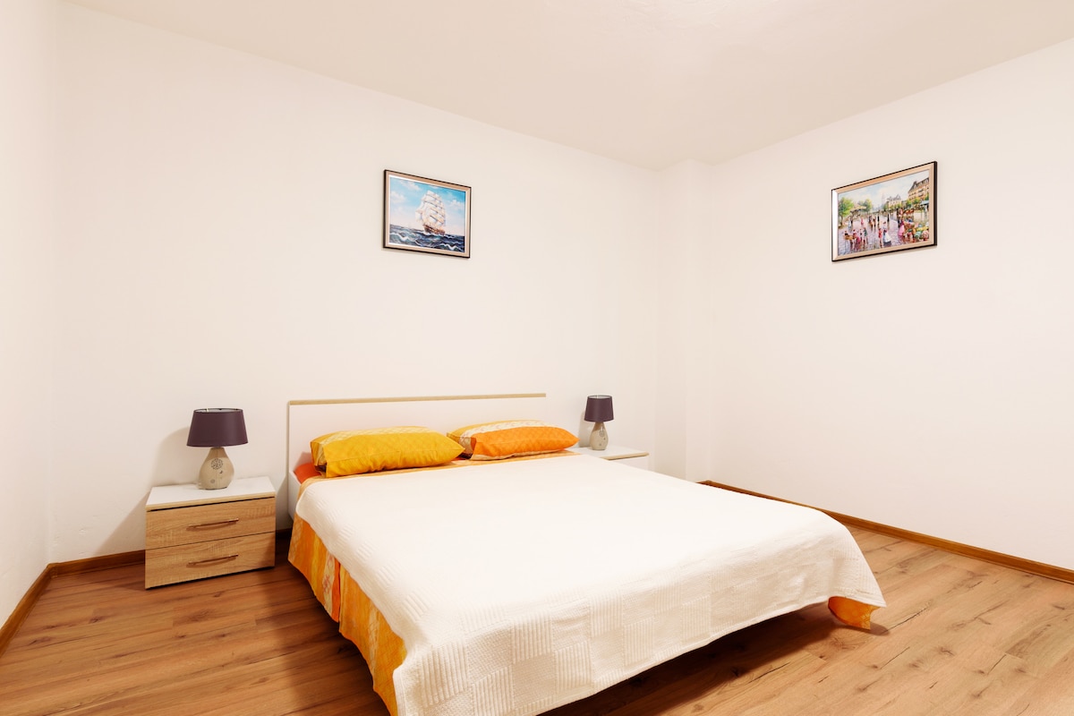 Frumoasa Marina Bibinje. Într-o poziție liniștită, la 300 m de mare, 300 m de plajă, într-o fundătură. Proprietate privată mare. În casă: mașină de spălat, bucătărie, baie nouă. Parcare la casa de la fața locului. Comerț 300 m, restaurant 1 km, plajă cu pietriș, șindrilă plajă, stâncoasă plajă 300 m.