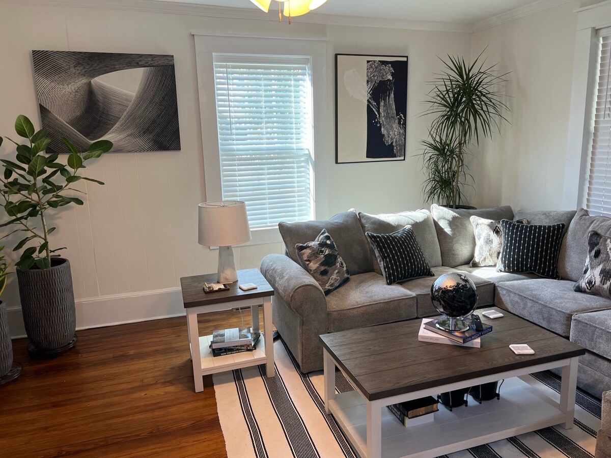 Casă complet renovată, situată la câțiva pași (15-20 de minute de mers pe jos de Fluor Field) până la West End din centrul orașului Greenville! Pe parcursul șederii tale, bucură-te de o locuință bine aprovizionată și confortabilă, cu 2 dormitoare și 2 băi. Folosește bucătăria completă pentru a găti o masă pentru familia ta, joacă unul dintre jocurile oferite cu prietenii sau bucură-te de o băutură pe terasă! Ai nevoie de mai mult spațiu sau de familie/prieteni care vin și ei în oraș? Consultă profilul meu de gazdă sau contactează-ne în legătură cu celălalt anunț de alături!