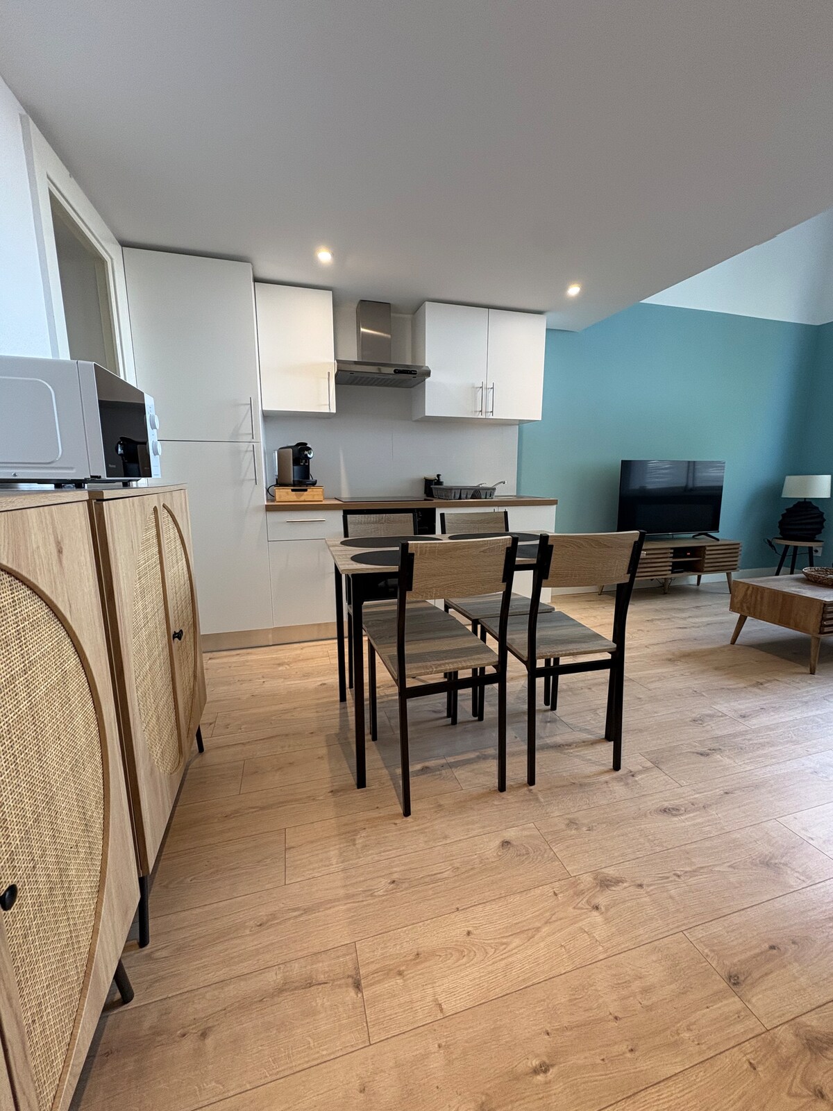Bienvenue au Studio Le Plumard Bleu. Idéal pour les travailleurs ou les couples, parking rue gratuit, à 3min de l'autoroute, 10min à pied de la gare, bus gratuit à 50m vous emmène à la plage (C3). Quartier calme, parfait pour télétravailler (wifi). Studio lumineux (avec volets) situé dans un bâtiment de la reconstruction entièrement rénové (thermique et fonctionnel) et classé 2 étoiles. Il se distingue par sa conception alliant espaces sur mesures et une décoration élégante et pétillante.