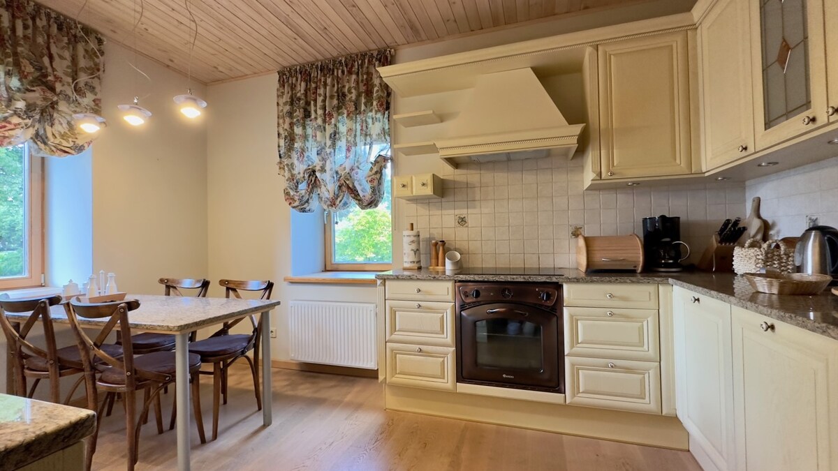 Apartament confortabil și elegant, cu două camere, cu intrare privată, situat la etajul întâi. Poziție bună, în apropiere de Centrul Olimpic Liepaja și SPA, aproape de mijloacele de transport în comun și de centrul orașului. Bucătăria are toate aparatele pentru o preparare confortabilă a alimentelor. SPAȚIUL - Bucătărie complet utilată -Frigider - Mașină de cafea - Wi-Fi și televizor gratuite - Fier de călcat - Uscător de păr - Mașină de spălat - Dispozitiv de curățare a aspiratorului - Parcare gratuită în fața casei