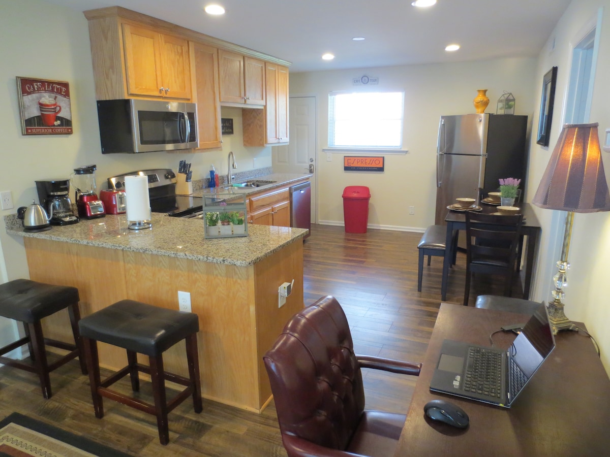 Garsonieră compactă la câțiva pași de centrul orașului Durham, cu intrare privată și parcare gratuită pe stradă! Chicinetă și baie bine aprovizionate. Aproape de Duke și pe jos de tot centrul orașului și multe altele: ✦ 7+ cafenele Peste ✦ 10 fabrici de bere ✦ O mulțime de restaurante + baruri ✦ DPAC, Durham Bulls + Durham Convention Center ✦ Central Park, Farmer 's Market + Durham Food Hall ✦ Ellerbe Creek + American Tobacco Trails Locuim în casa de deasupra studioului și suntem bucuroși să te ajutăm cu orice ai putea avea nevoie.