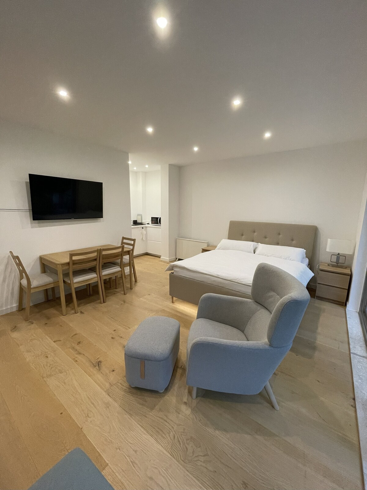 Bucură-te de o experiență elegantă la această proprietate situată central, în inima orașului Düsseldorf. Apartamentul nostru de înaltă calitate, mobilat de 40 mp, este alegerea ideală pentru profesioniști și cupluri să se bucure la maxim de Düsseldorf. Se caracterizează printr-un aspect industrial și permite tuturor locurilor importante din Düsseldorf să ajungă cât mai repede și mai ușor posibil prin locația sa. Centrul orașului este la cinci minute de mers pe jos, iar gara este la numai 1 minut.