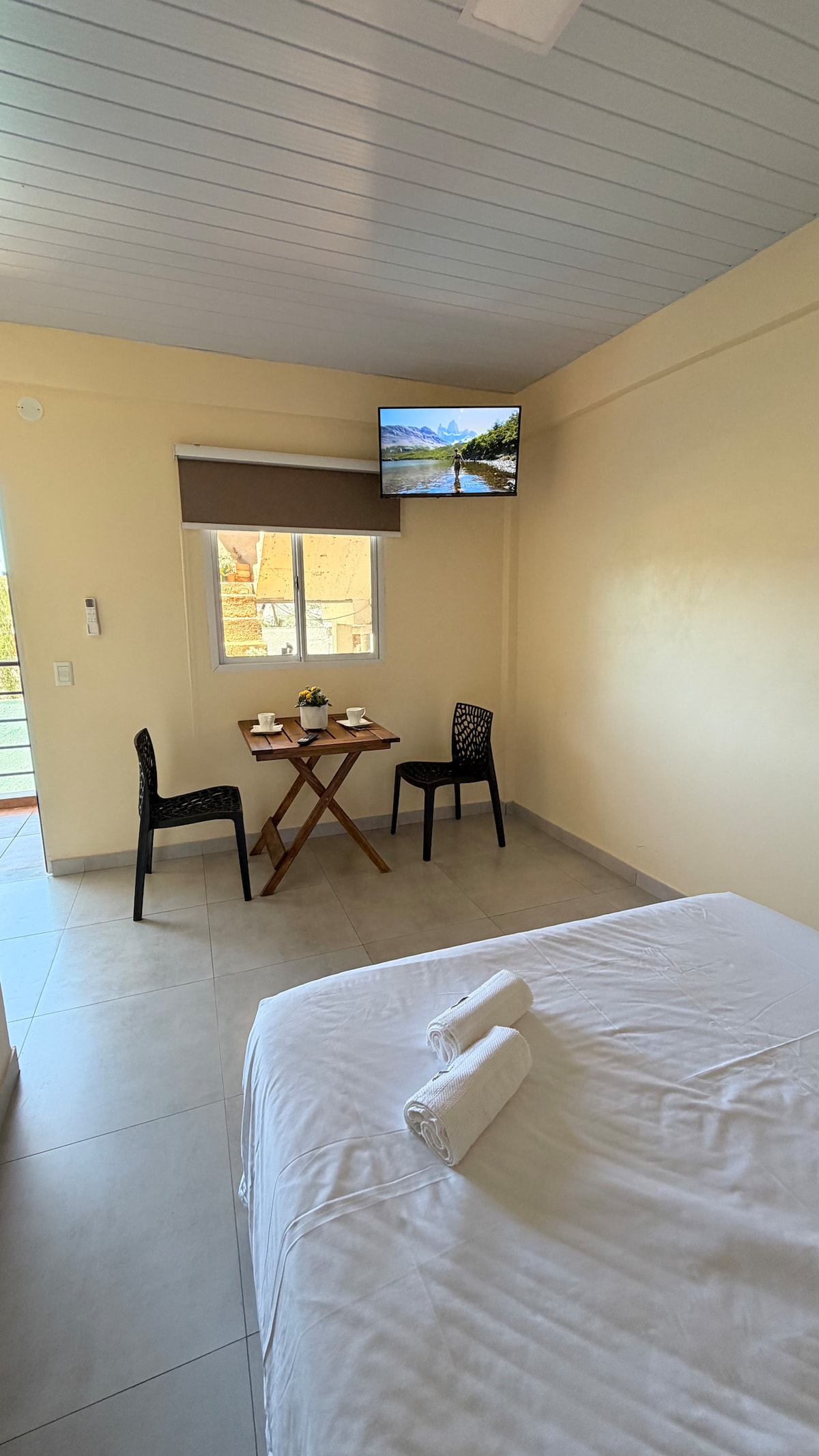Locație excelentă în centrul orașului Puerto Iguazú, pe Bulevardul Victoria Aguirre, la 50 de metri de piața principală și la câțiva pași de baruri, restaurante și magazine regionale. Vedere frumoasă la oraș, într-o zonă liniștită, cu acces rapid la atracțiile turistice, aeroportul internațional (21 km), cazinoul Iguazu (2,6 km) și Duty Free Shop (3,6 km). Camere spațioase cu aer condiționat, living/sufragerie cu TV/Wi-Fi, bucătărie utilată și balcon cu grătar.