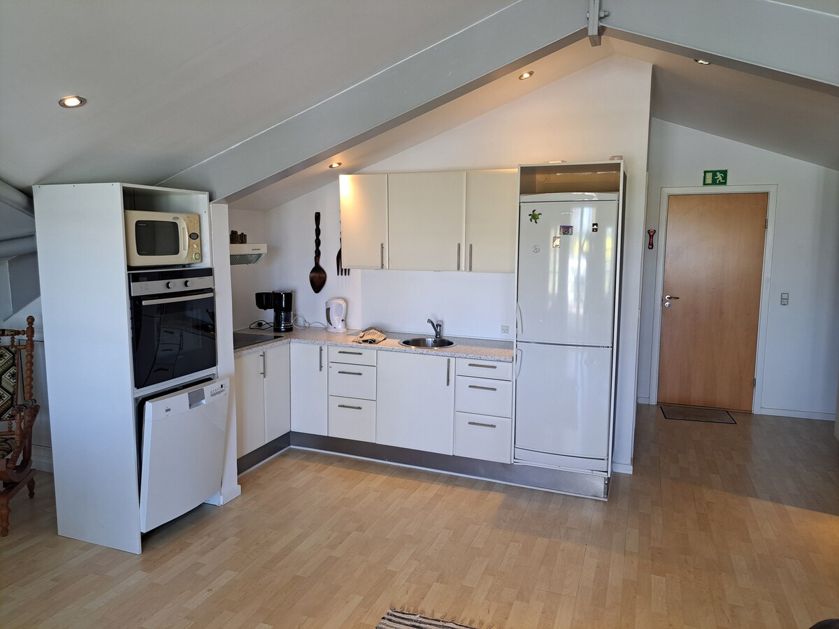 Apartamentul este situat în Nybøl, care este un oraș mic, aproape de Sønderborg. Apartamentul are bucătărie și living într-un singur spațiu. Bucătăria este complet utilată. Este disponibilă o baie cu mașină de spălat. În dormitor este un pat dublu. Dormitorul se închide cu o perdea care duce spre hol. În plus, este posibil să aranjați canapeaua pentru până la 2 persoane. În living există un televizor cu Chromecast. Există acces la un balcon minunat cu vedere la câmpuri.
