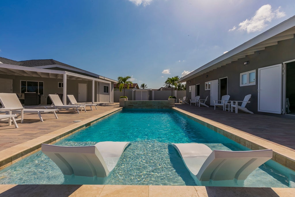 Acesta este locul perfect pentru a scăpa și a te bucura de plajele cu nisip alb, briza frumoasă și soarele fierbinte din Aruba. Indiferent dacă ai nevoie de o escapadă de cuplu, de o vacanță cu familia sau de sărbătorirea cu prietenii, nu vei fi dezamăgit de acest complex curat, proaspăt, nou construit. Piscina nou construită este situată în centrul proprietății. Echipat cu șezlonguri în piscină și scaune de gazon pentru relaxare lângă piscină. Fiecare apartament are șezlonguri portabile, prosoape de plajă și un răcitor.