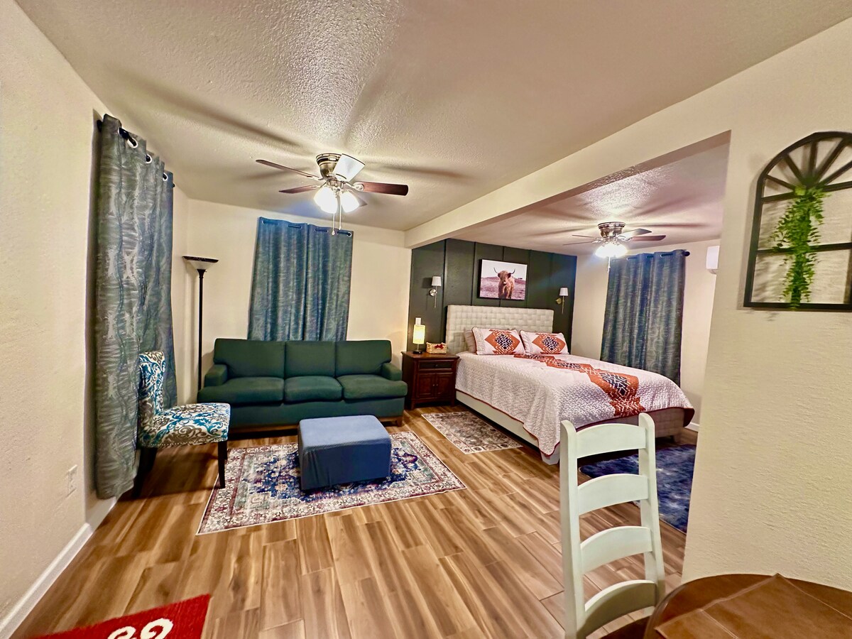 Bine ai venit la The Rustic Cottage! Acest studio confortabil și fermecător are tot ce îți trebuie pentru o ședere confortabilă în inima Eagle Pass, Texas. Amplasat la doar câteva minute de centrul orașului și atât de Podul I și II până la Piedras Negras, Coahuila, este locația perfectă pentru călătorii care caută confort și intimitate. ! LOCAȚIE PERFECTĂ! Fie că ești aici pentru afaceri sau pentru petrecerea timpului liber, îți va plăcea să fii la doar 15 minute de Kickapoo Lucky Eagle Casino și la numai 5 minute de Mall de las Aguilas. ÎNCĂRCĂTOR EV!