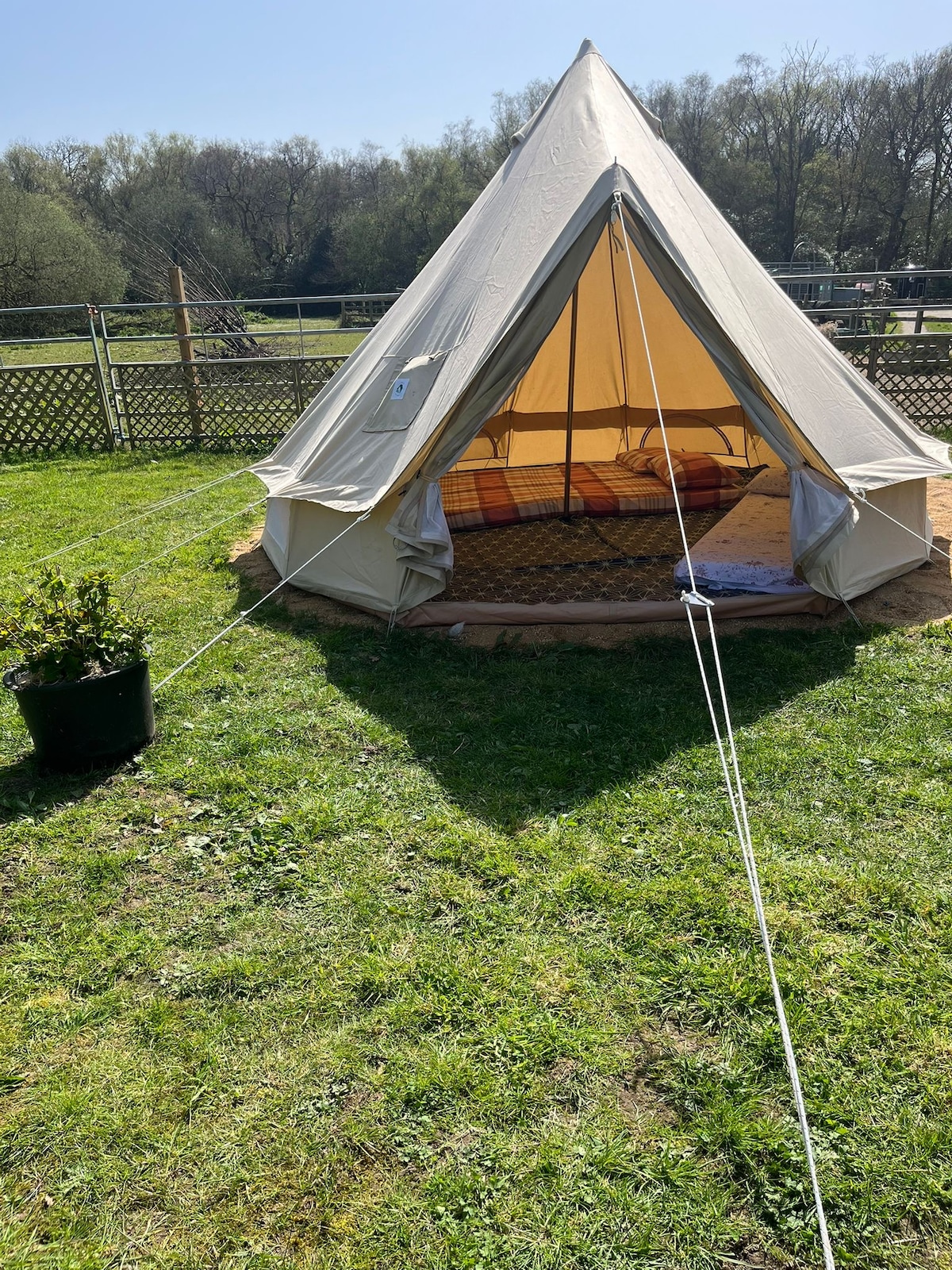 Scapă de tot atunci când stai sub stele. O scurtă plimbare până la pub-ul satului local și 5 minute de mers cu mașina până la plaje frumoase și plimbări prin pădure. Corturile Bell sunt situate în ferma noastră de animale din inima satului. Corturile noastre spațioase cu clopot dorm 4 și includ: 4 paturi, grătar, aragaz cu 2 arzătoare, oale și tigăi, ustensile, tacâmuri și pături. Tot ce trebuie să faci este să-ți aduci propriul așternut. 2 toalete și dușuri la fața locului, cu facilități de spălare a apei curate. Fără ELECTRICITATE