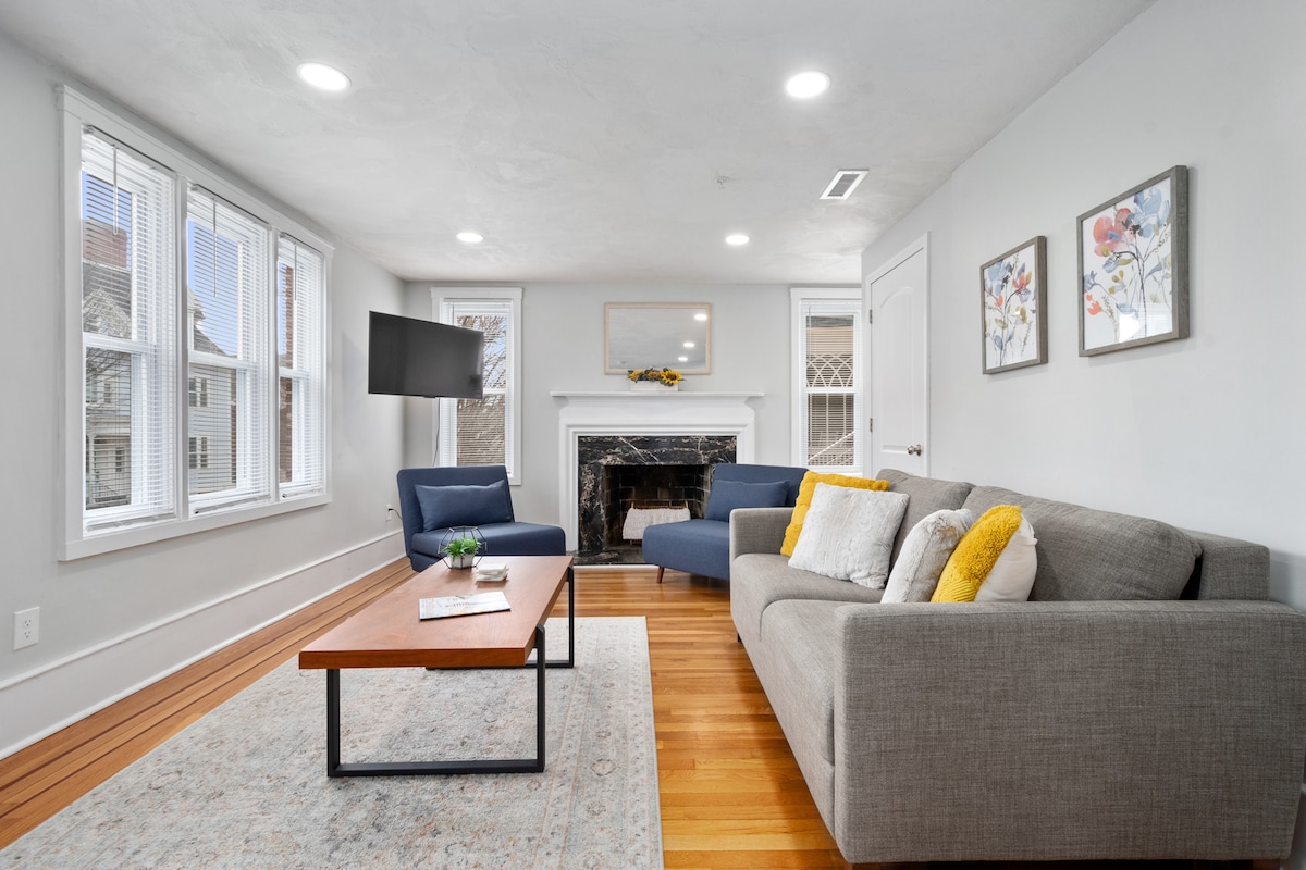 Heart of historic College Hill in a beautifully renovated 1st-floor apartment, just steps from Thayer Street and Wayland Square. Across from Brown University, this spacious unit features a fully equipped kitchen, walk-in shower with in-unit laundry, primary bedroom with workspace, and living room with original marble fireplace. Sleeps up to 6 with convertible furniture (queen sleeper sofa + 2 twin fold-out chairs). Just 1 mile from the train and 15 minutes from the airport.