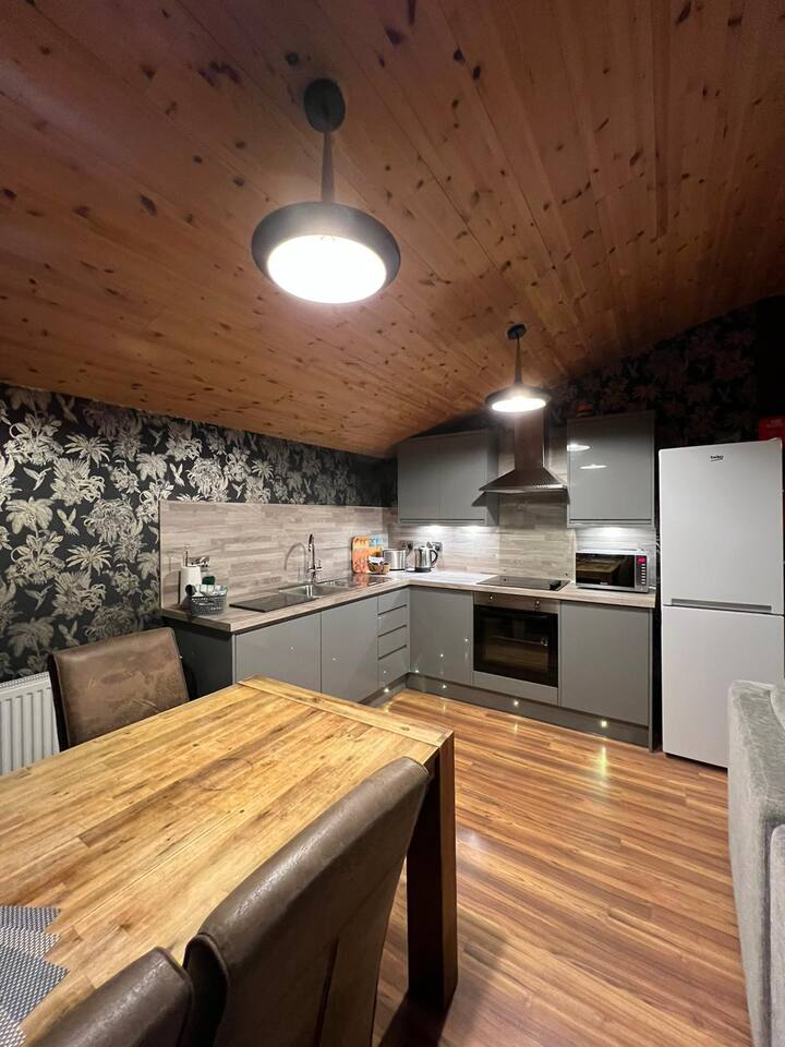 Recent decorat și mobilat pentru 2021, intri în apartamentul tău privat de la parter, intrând direct în noua bucătărie frumos echipată, cu aparate electrocasnice, zonă elegantă de luat masa perfectă pentru cine romantice relaxate și confortabile cu lumânări aprinse. La etaj și intri în zona ta caldă de living cu un balcon mic cu vedere la Baysgarth Park, mobilat cu canapea și scaune asortate, iluminare ușoară și un televizor inteligent care duce în dormitor cu somptuosul său pat francez antic și baie privată.