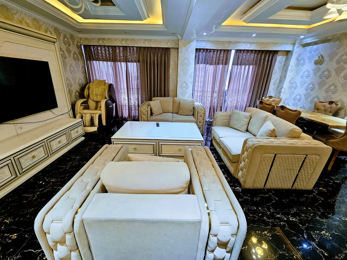 Bucură-te de un apartament modern cu 3 dormitoare, cu vedere uimitoare la orașul Addis, ferestre din podea până în tavan și un balcon privat. Dispune de un living luminos deschis, iluminat elegant, bucătărie complet utilată, Wi-Fi rapid, smart TV și spălătorie. Situat într-un cartier liniștit, de lux, Yeka - perfect pentru familii, persoane care călătoresc în interes de afaceri și șederi de lungă durată.