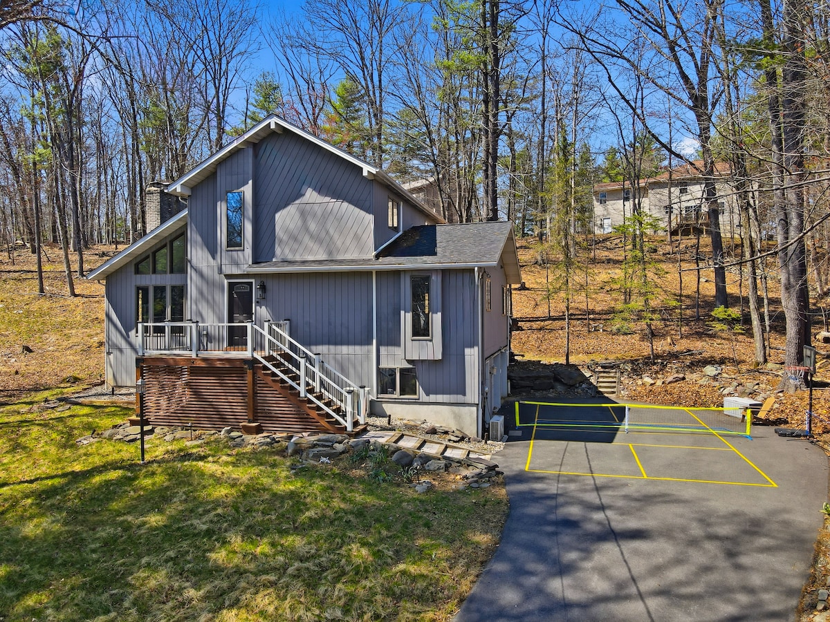 Relaxare, cabană, Poconos, cadă cu hidromasaj, saună, sală de sport, pickleball, vehicule electrice