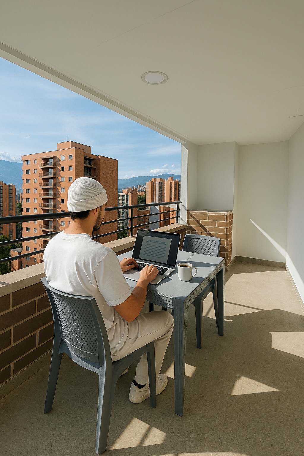 Suită complet mobilată de 28 m2, cu aer condiționat și chicinetă. Situat într-una dintre cele mai bune zone din Medellin, într-un cartier foarte liniștit, aproape de toate locurile de interes. Suita are vederi spectaculoase asupra orașului și munților. Puteți utiliza zona de coworking, sala de gimnastică și o cafea spectaculoasă care oferă diferite tipuri de băuturi bazate pe cea mai bună cafea columbiană, vă puteți bucura de băutură pe terasa situată la etajul 2 al clădirii.