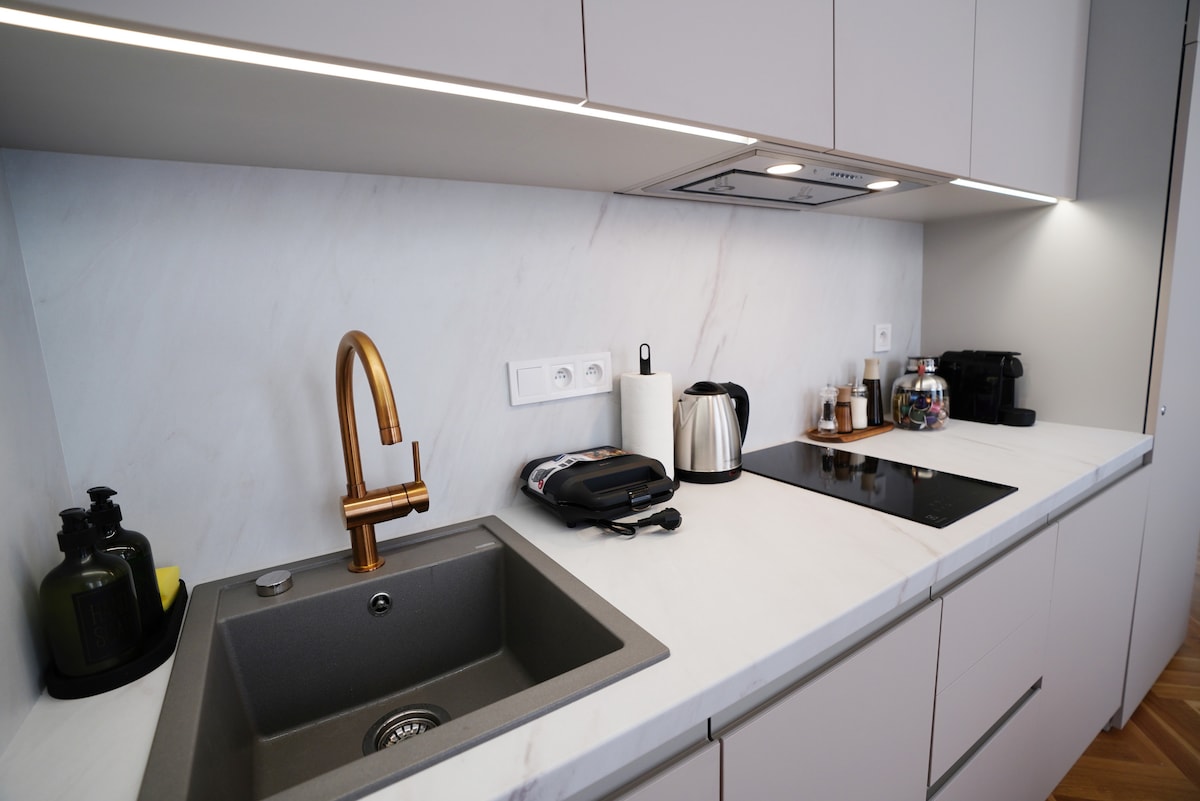 Your perfect place to stay in Prague for one or two people. From the minute you walk into our classic building built in 1982, the history is almost palatable. Refurbished with all the luxuries of modern life. From a fully stocked kitchen to the luscious hot towel warmers will make you feel right at home. We know the importance of a great night's sleep. Enjoy our comfortable orthopedic beds and pillows. See you soon.