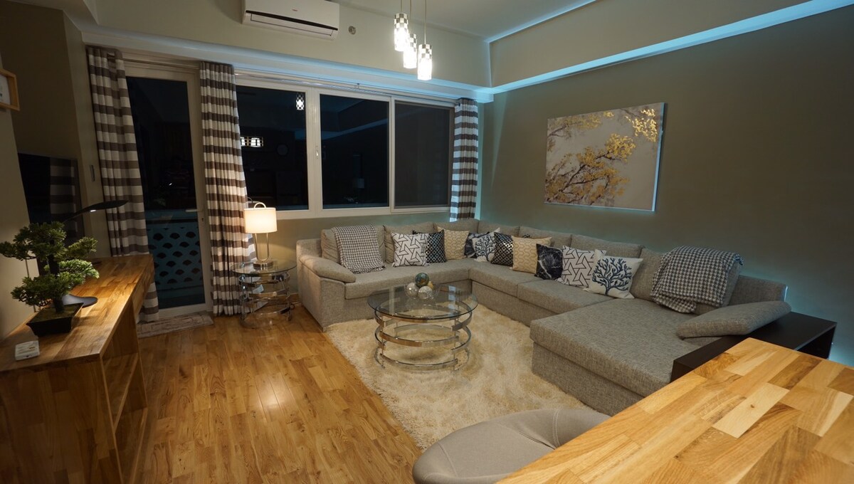 Casa ta departe de casă, unde briza blândă întâlnește nisipurile moi, nisipurile se întâlnesc cu marea strălucitoare, iar marea întâlnește oceanul vast sub îmbrățișarea caldă a soarelui. Bucură-te de confort și liniște în unitatea noastră de colț cu 1 dormitor, cu un pat matrimonial, o canapea extensibilă pentru cei 2 oaspeți suplimentari, balcon cu pat de zi pentru a te bucura de priveliștea uluitoare. Situat în Tambuli Seaside Living Tower D, la doar 12 km de Aeroportul Internațional Mactan. *Minim 2 nopți
