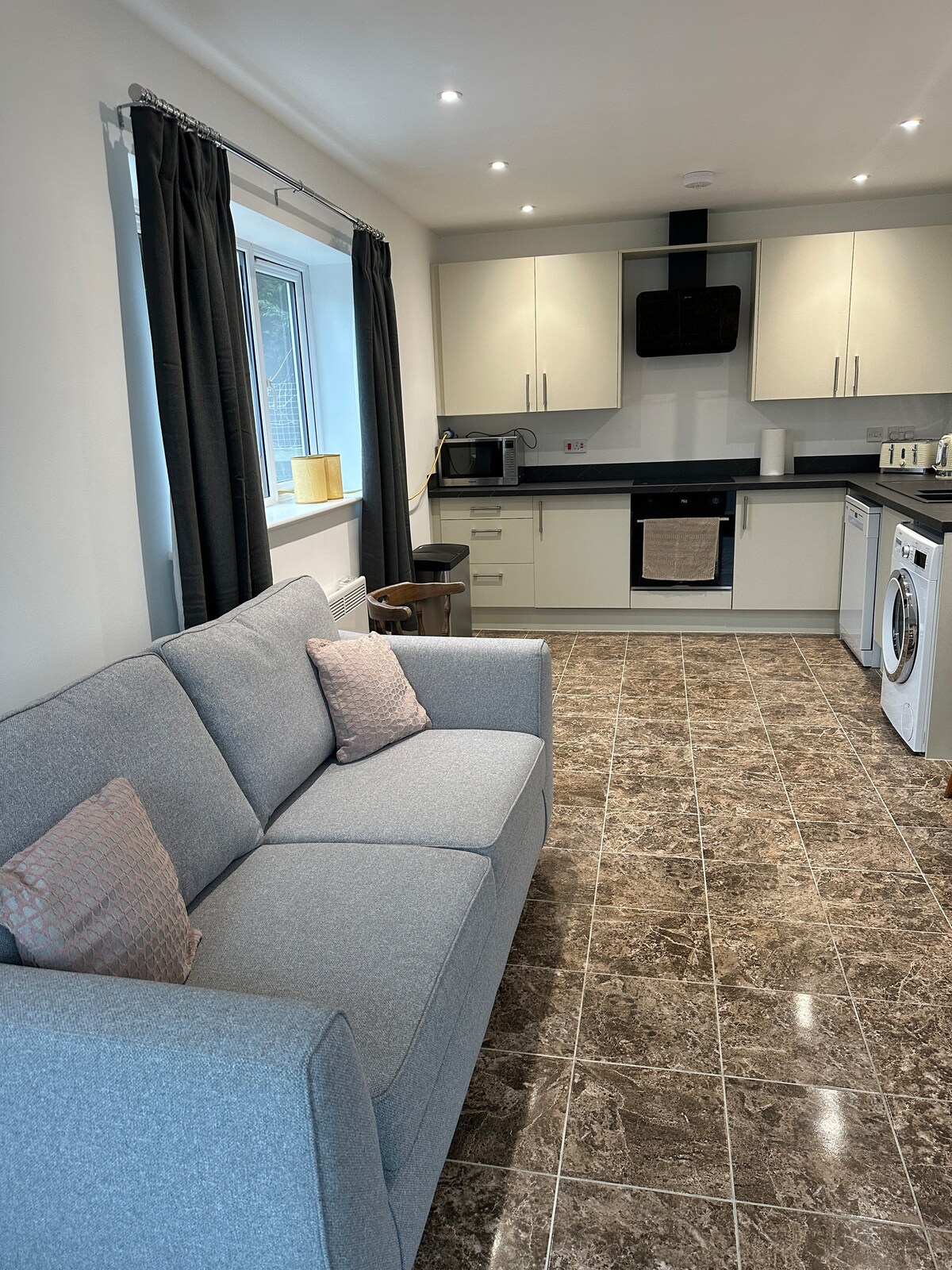 Fabulous newly renovated luxury apartment with central location. The Fully fitted kitchen contains a fridge, freezer, dishwasher, washer dryer, electric oven, induction hob, toaster, microwave & kettle. Living area contains 4 seat dining table, L Shaped sofa, Smart TV. Bed 1 has a Kingsized bed, small wardrobe, full length mirror, double chest of drawers, smart tv and relaxing chair. Bed 2 can either be made up as a king size or 2 single beds, smart tv, dressing table, wardrobe