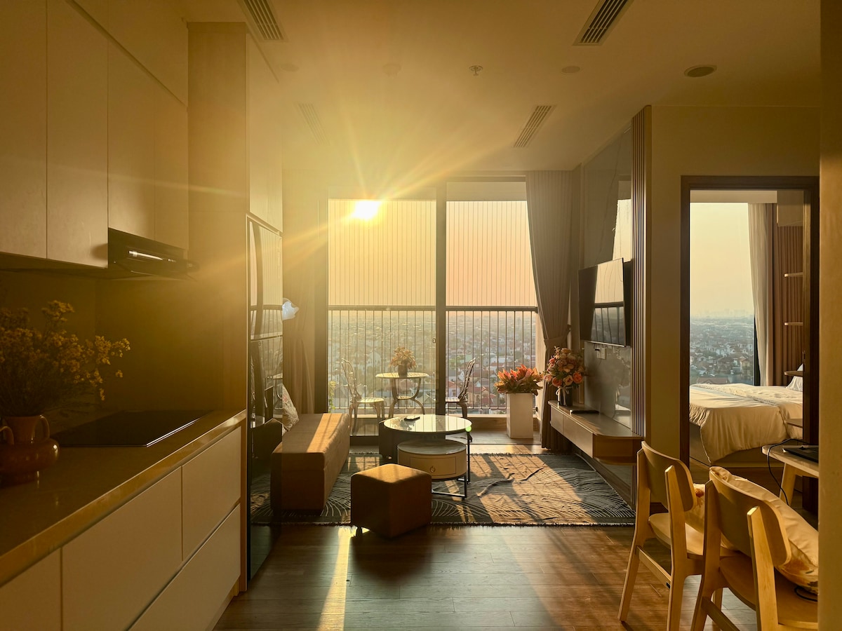 Where art, light, and lakefront serenity meet — a rare designer loft in Ecopark, near Hanoi. A 28th-floor retreat with bold interiors, panoramic views & a Japanese-style private onsen. 📍 30 mins to Old Quarter · 45 mins to Airport — peaceful, family-friendly & surrounded by nature. 🌿 Luxury décor · Pool · Gym · Workspace · Private onsen (50% off Mori Onsen). 💌 Message us for local tips — we’d love to host your skyline escape