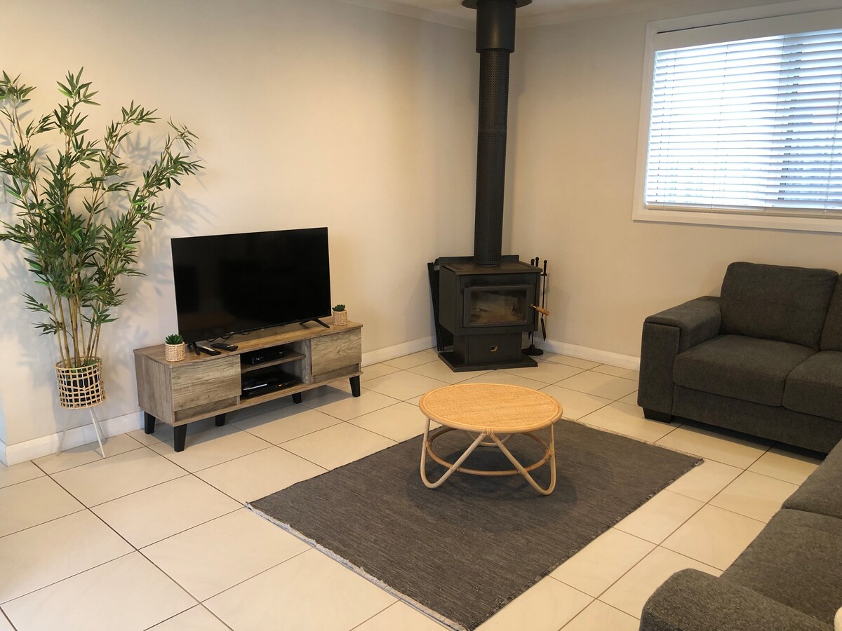 O colibă retro drăguță, doar pentru tine. Excelent pentru cupluri sau familii mici. Poziție foarte convenabilă, cu plaja și pârâul la o scurtă plimbare, la fel ca parcul și magazinul general. Asigură curtea din spate cu terasă și zonă de grătar. Biciclete push și echipamente de plajă furnizate pentru utilizare. Două zone de living, fiecare cu propriul televizor.