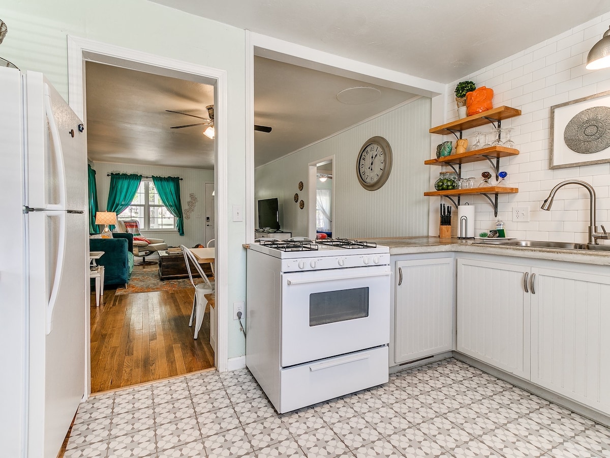 Acest duplex decorat cu gust este situat în inima orașului Edmond, la câțiva pași de cumpărături, magazine alimentare și restaurante. Situat convenabil pentru cumpărături locale excelente, restaurante delicioase și acces rapid interstatal la centrul orașului OKC. Pot dormi lejer 4 persoane. Cu Wi-Fi de mare viteză, televizoare inteligente, paturi confortabile și o bucătărie bine aprovizionată, te vei simți ca acasă! Ai nevoie de spațiu dublu? Rezervă ambele părți ale acestui duplex! Întreabă gazda dacă ai nevoie de asistență.