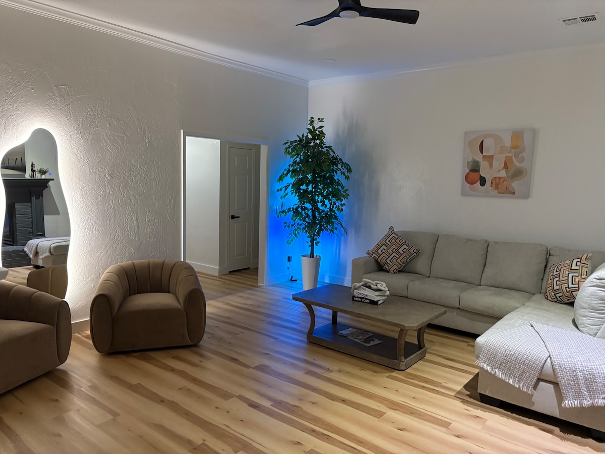 LOCAȚIE UIMITOARE! Plimbare minunată într-un cartier curat și liniștit. La câțiva pași de UCO, acces rapid la I-240 și I-35. Apartamentul frumos, recent renovat, are Smart TV cu Netflix gratuit, bucătărie cu servicii complete pentru pregătirea mesei cu toate aparatele noi, facilități gratuite de spălătorie la cerere, cafea gratuită, Wi-Fi rapid - tot ce trebuie să lucrezi departe de casă sau pur și simplu să te bucuri de o vacanță. Produsele noastre de curățare nu sunt toxice. Vino să te bucuri de această escapadă liniștită și uimitoare!