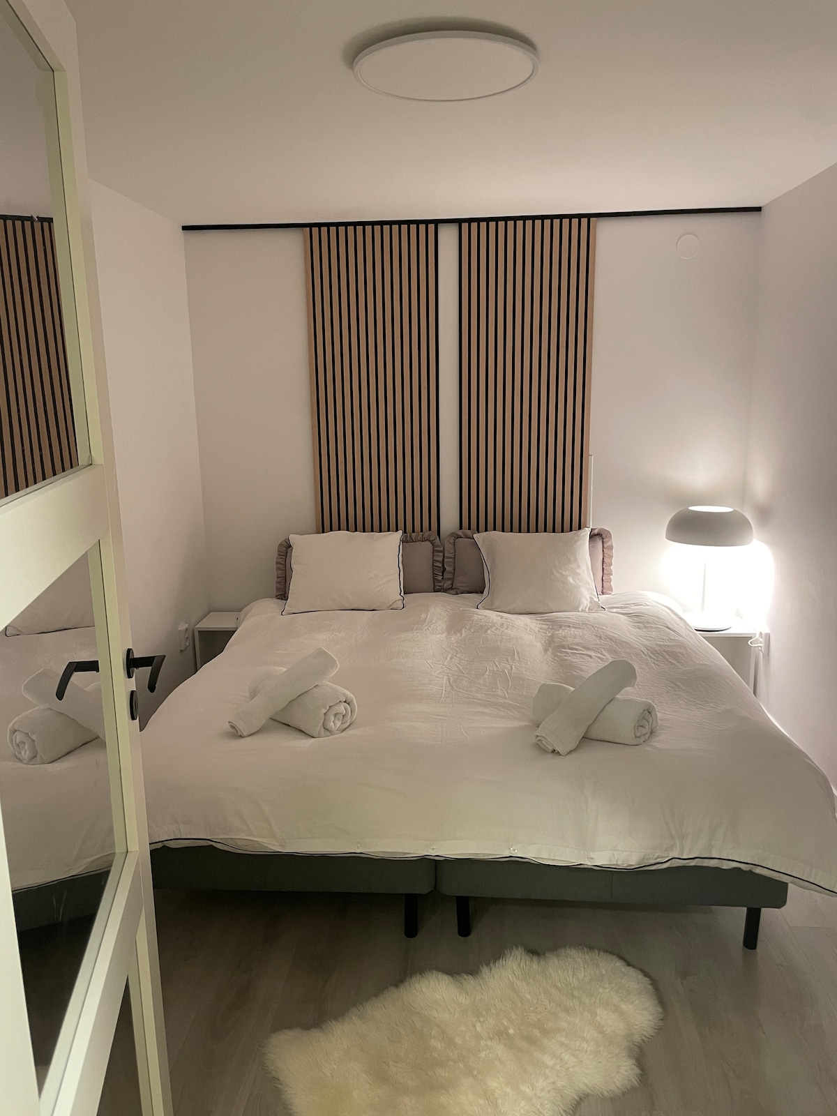 Här bor ni i en lägenhet på nedre våningen i en villa med egen ingång (egen incheckning) Centralt läge ca 20 min till Stockholm eller Arlanda med tåg Boendet Den egna lägenheten är på 70m2. Det är ett vardagsrum, en liten köksvrå, ett sovrum med tv och arbetsplats, en stor toalett med dusch och bastu som kan nyttjas för en extrakostnad på 10€ (120SEK) per tillfälle och garage med multigym. cyklar finns att låna, te, kaffe och mjölk finns. Gratis parkering, sängkläder och handdukar ingår