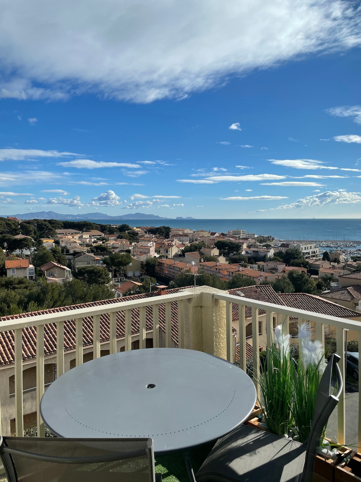 Apartament frumos cu vedere uluitoare la mare. La primul etaj al unei reședințe cu loc de parcare și pază. O intrare pe la mare, una pe la oraș, poartă automată. Gara se află la mai puțin de 5 minute de mers pe jos, portul la 2 pași. Piața de duminică. Corniche superb pentru sportivi și excursioniști. Terasa de 36 m2, complet echipată cu plancha. 2 dormitoare, unul cu pat de 160 × 200 la etaj cu spațiu de depozitare, al doilea pat de 140 × 190 Baie cu duș mare și toaletă - Bucătărie mobilată