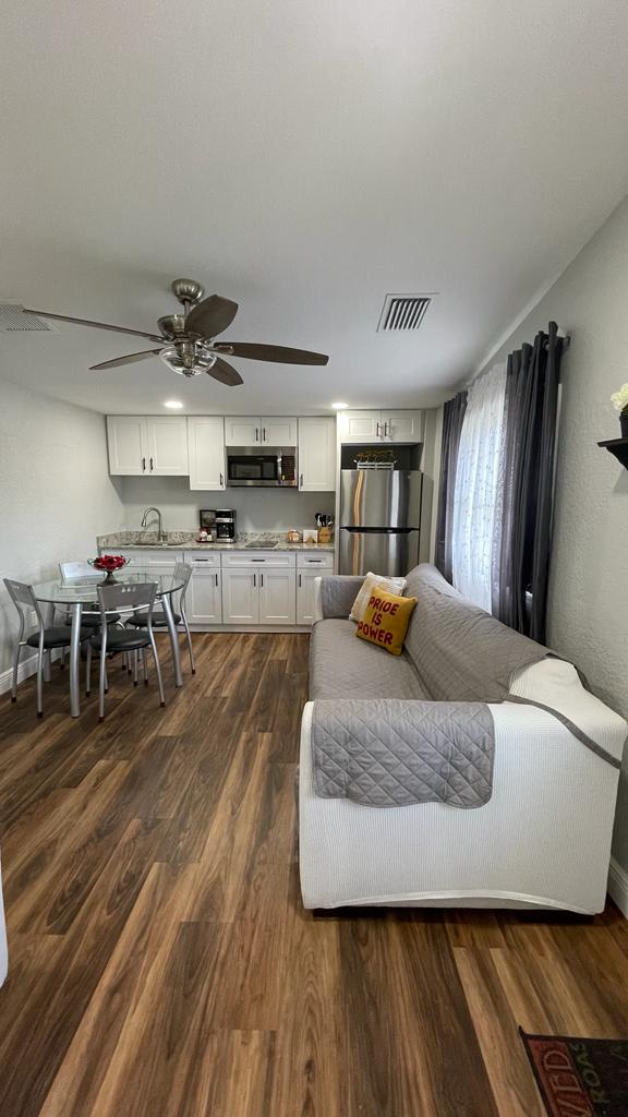 Este un mini studio pentru a obține o vacanță frumoasă. Toate beneficiile unui apartament mic. Această suită are un pat matrimonial, baie completă și o bucătărie mică cu cuptor cu microunde și minifrigider, cafetieră cu cafea inclusă. Situat la aproximativ 10 minute de aeroportul din Tâmpa, la 5 minute de stadionul Raymond James și la aproximativ 20 de minute de Busch Gardens. Situat central la toate atracțiile și restaurantele din Tâmpa.
