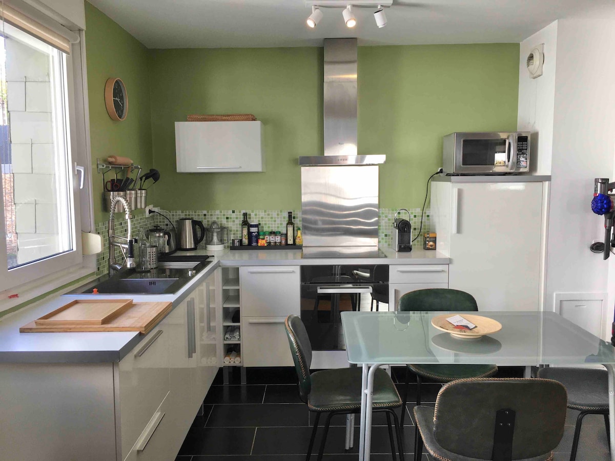 Casă fermecătoare între e-mail și stadionul Rennes din Rennes, cu servicii de calitate și confort optim și confort optim. Luminos și plin de farmec, poate găzdui 6 persoane. Complet echipat și cu terasa sa va fi perfect pentru un sejur confortabil. Casa are trei dormitoare cu 3 paturi matrimoniale, inclusiv 1 160x200 și 2 140x200. O baie și 2 toalete, una la parter și alta adiacentă sălii de duș.