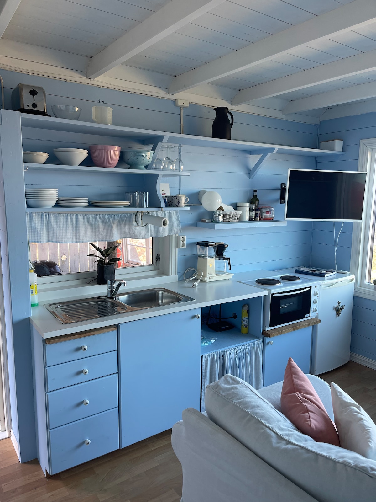 Cabană elegantă și spațioasă, într-un cadru natural frumos, cu vedere fantastică la mare. 5 minute de mers pe jos până la mare, unde poți înota, face grătar și pescui în zilele cu vreme frumoasă. Posibilitatea de a închiria o ștampilă pe tot parcursul anului (cadă cu hidromasaj în aer liber cu lemne) pentru 1.500 NOK în plus. Cabana este situată în inima fortului de coastă Stapnes, cu oportunități excelente de drumeții. Există oi și cai domestici la fermă pe care este posibil să îi mângâi, o super activitate pentru copii. 10 minute (cu mașina) până în centrul orașului Egersund, unde vei găsi cafenele confortabile, brutărie și magazine.