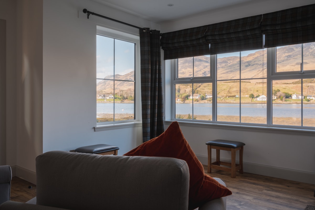 Scor mediu de 5 din 5, 40 recenziiUn Dòbhran - o casă de lux spațioasă la malul mării.