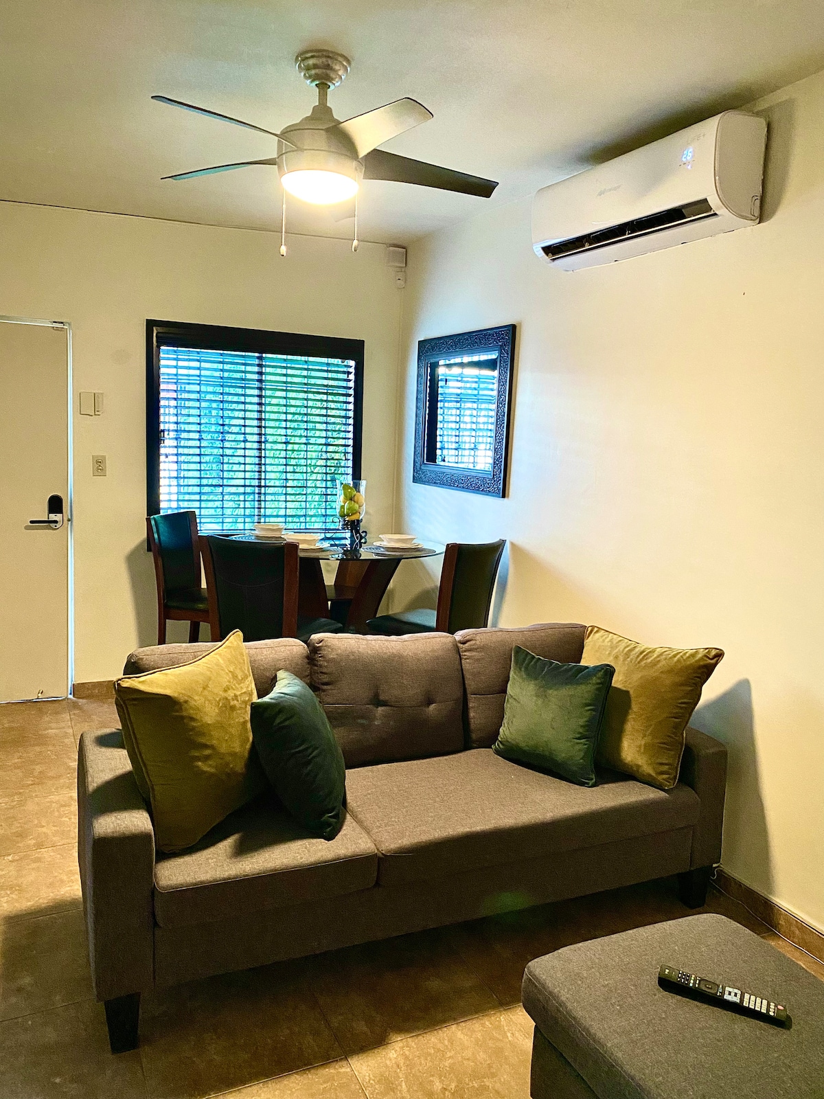 Bucură-te de o cazare sigură într-un complex rezidențial privat, situat la etajul al doilea, mobilat pentru până la două persoane, cu minisplit,lenjerie de pat, baie cu tot ce ai nevoie, dormitor cu Smart TV, pat matrimonial, bucătărie echipată și parcare pentru o mașină. Poziția este excelentă, deoarece este foarte aproape de Garita Nuevo Mexicali, 15 minute. De la aeroport , lângă Calzada Cetys, unde vei găsi restaurante, mall-uri și săli de gimnastică.