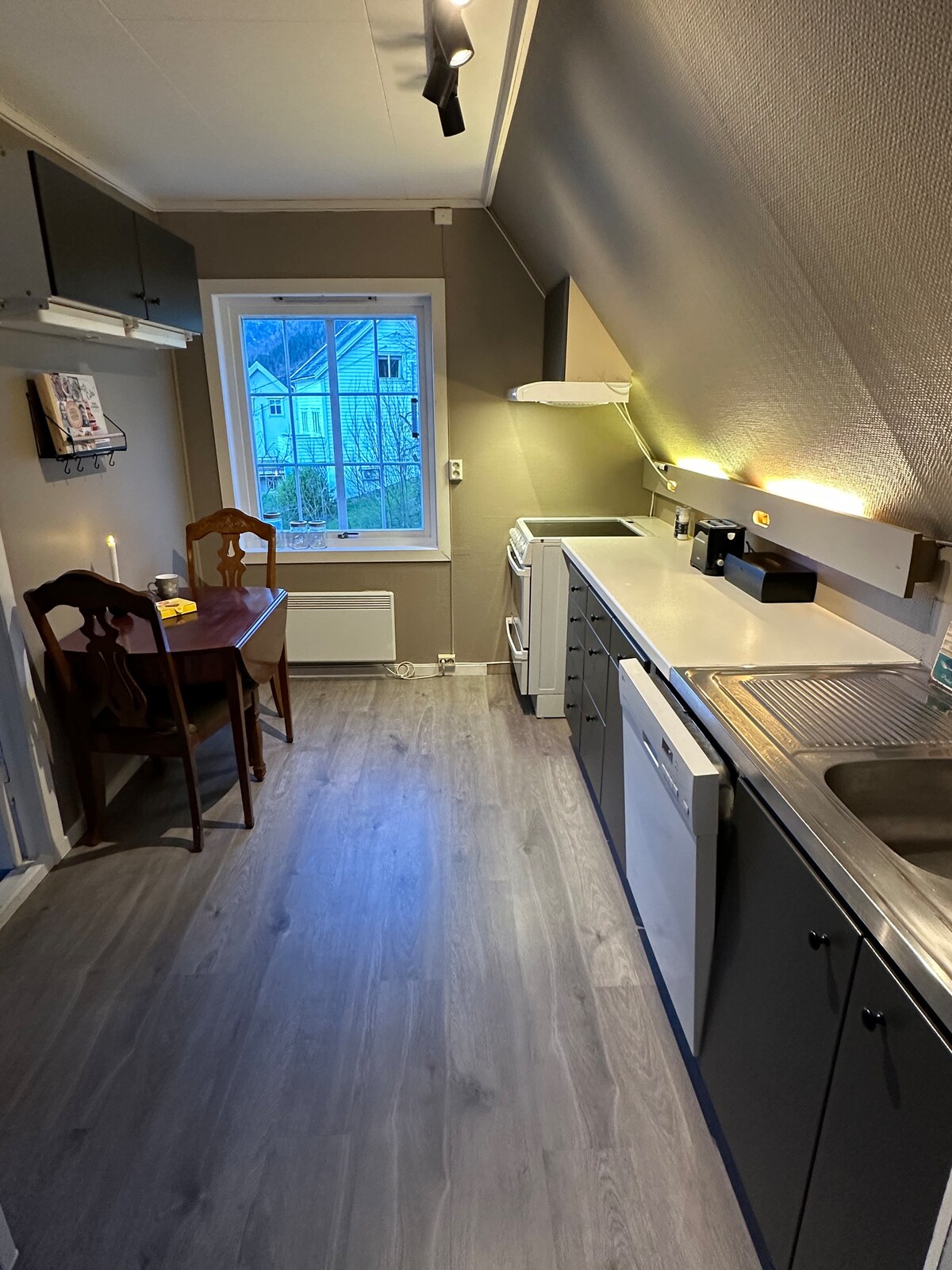 Tomannsbolig a fost nou în vara anului 2019, este frumos situat în marginea fiordului Torsnes. Casa de vacanță este complet echipată și are vedere panoramică la fiord și munți.La casa există o zonă în aer liber cu chei și plajă privată mică, este bine situat pentru pescuit în fiord. Există o mașină de spălat și uscător în baie. Întreaga casă constă din două apartamente separate, acesta este unul și cel mai mare. Cea mai mică unitate este situată în partea din față a casei. Jondal este un paradis pentru pasionații de aer liber.