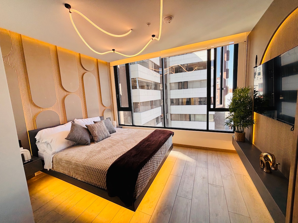 Very cozy 😊, bright 💡, fully equipped, and perfectly located 📍 — you won’t be sharing it with anyone else! Rating 4.99 ⭐⭐⭐⭐⭐ Rating 4.99 ⭐⭐⭐⭐ — Best rated in all of Quito Top 5 In North-Central Quito, just one block from La Carolina Park 🌳, Mall El Jardín 🛍️, Chamber of Commerce, and Metro Station 🚇. Close to Quicentro and CCI Mall. Banks 🏦 and restaurants 🍽️ nearby, but on a calm, quiet street. Enjoy Gym 🏋️, Co-working 💻, Game Room 🎲, BBQ 🍖, and Jacuzzi 🛁!