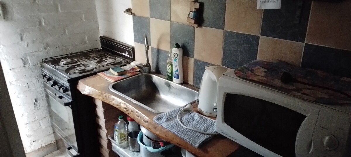 Tiny house es una casa de huéspedes monoambiente independiente, luminosa y rodeada de árboles. Cuenta con cama matrimonial y diván, cocina equipada, TV con Sensa y DTV Go, calefacción y baño privado. El patio es compartido. Estamos a una cuadra de la ruta, en un barrio tranquilo con fácil acceso y mucho entorno natural.