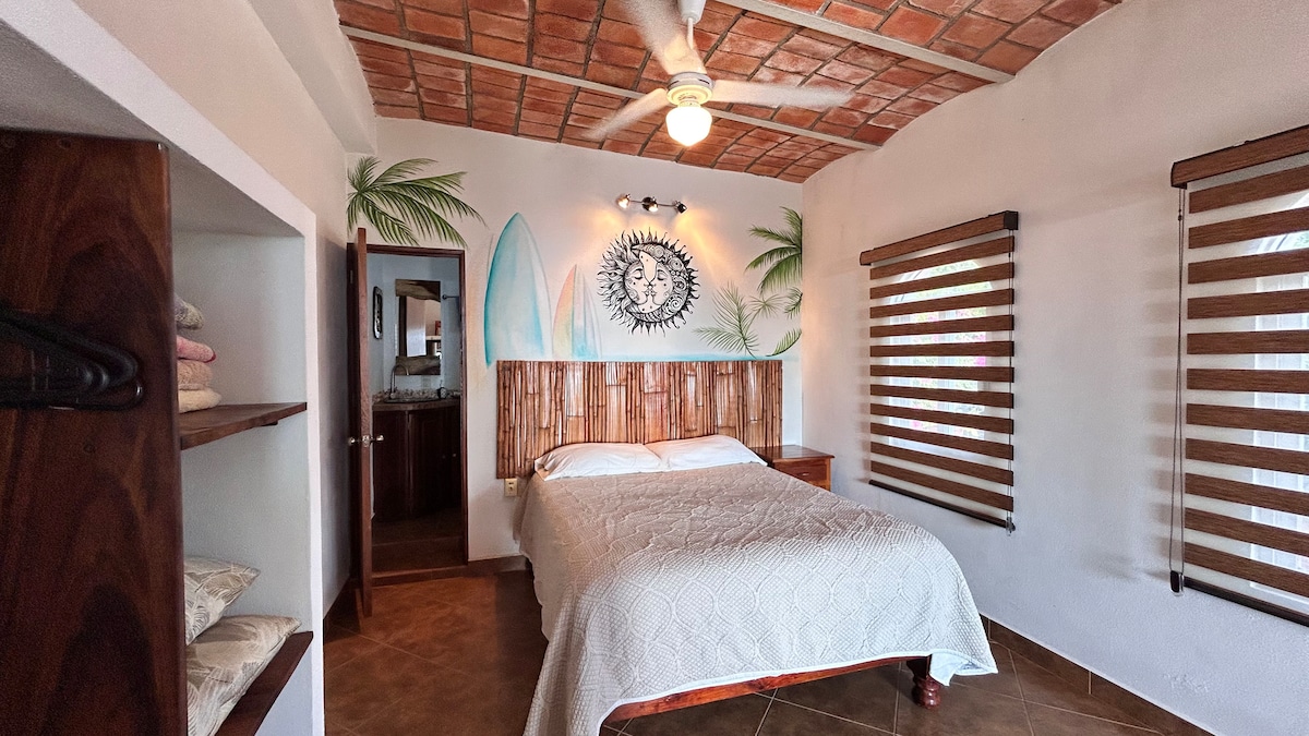 Bucură-te de liniștea și frumusețea naturală a orașului San Pancho din această casita privată pe două niveluri, situată în partea de sus a dealului Costa Azul. Adormi cu sunetul valurilor care se sparg și te trezești cu o grădină expansivă, cu vedere parțială la ocean, de la nivelul superior cu acoperiș palapa. Plaja este la 2 minute de mers pe jos la vale. O plimbare pe plajă de 15 minute te duce în pueblo, care oferă bucătărie internațională, atmosferă relaxată și o varietate de divertisment.