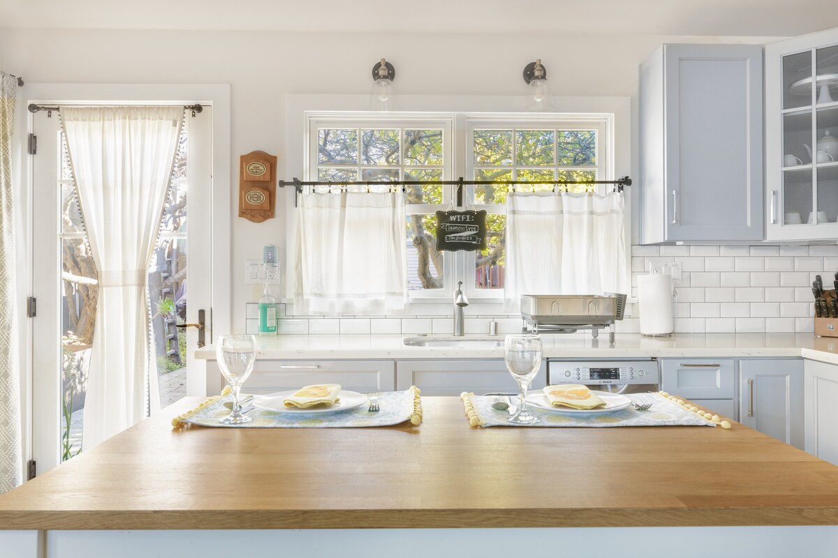 Cabana noastră poate fi casa ta confortabilă departe de casă. Bucătăria bucătăriei are aragaz, cuptor, frigider și congelator, plus cafetieră Keurig. Vrei să-ți faci propriul smoothie pentru micul dejun? Există un Vitamix pentru tine. Preferi cafeaua cu presă franceză? Avem o mașină de spălat rufe și o presă franceză pentru tine. Bucură-te de micul dejun sau de paharul de vin de seară pe terasa ta privată sau relaxează-te în timp ce urmărești emisiunea sau filmul tău preferat pe televizorul nostru inteligent.