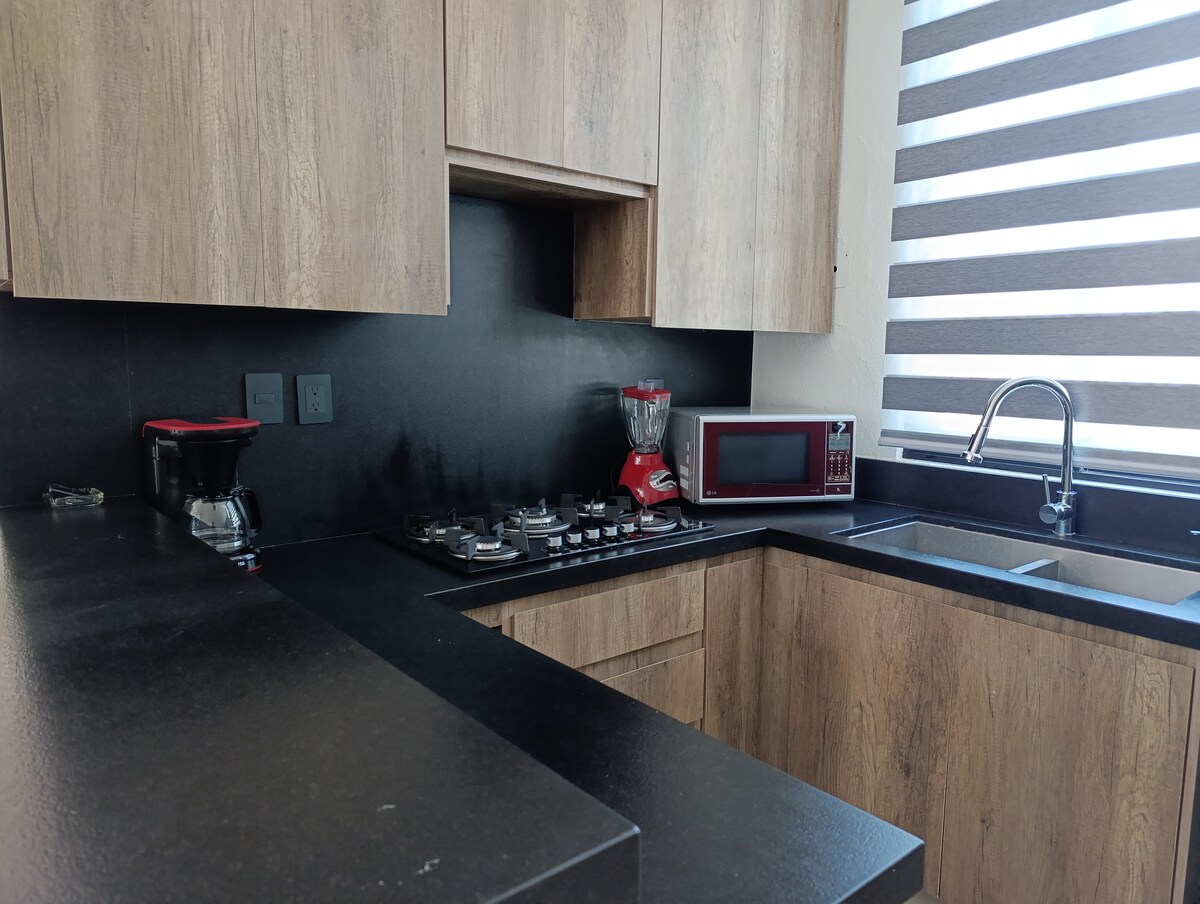 Apartament complet privat. Ideal pentru călătorii de afaceri și turism, avem TV și aer condiționat. Foarte aproape de Universitatea din Colima , la doar 5 minute de mers pe jos. La un cvartal de unitatea sportivă Morelos. Cinci minute cu mașina de Spitalul Regional, Complexul administrativ guvernamental, Centrul de convenții și Courts I,II,III al cartierului. Relaxează-te în acest spațiu foarte liniștit și elegant.