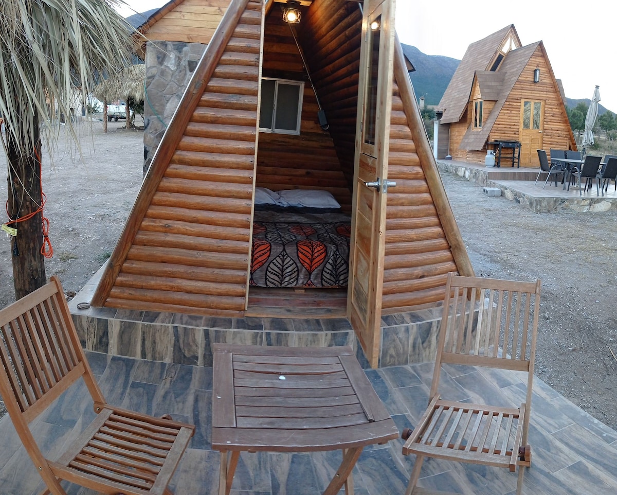 Deconectează-te când stai sub stele. Cabana noastră mică pentru cupluri sau două persoane te va face să trăiești un moment de neuitat în contact cu natura în modul corect de glamping, fără a sacrifica unele facilități necesare. bucură-te de un peisaj frumos, admirând în același timp munții impunători din Arteaga, Coahuila, citind în același timp o carte sau savurând un pahar de vin cu partenerul tău. Vizitează-ne și bucură-te de aerul de la țară și de frumusețea naturii, te așteaptă O CABANĂ MICĂ.