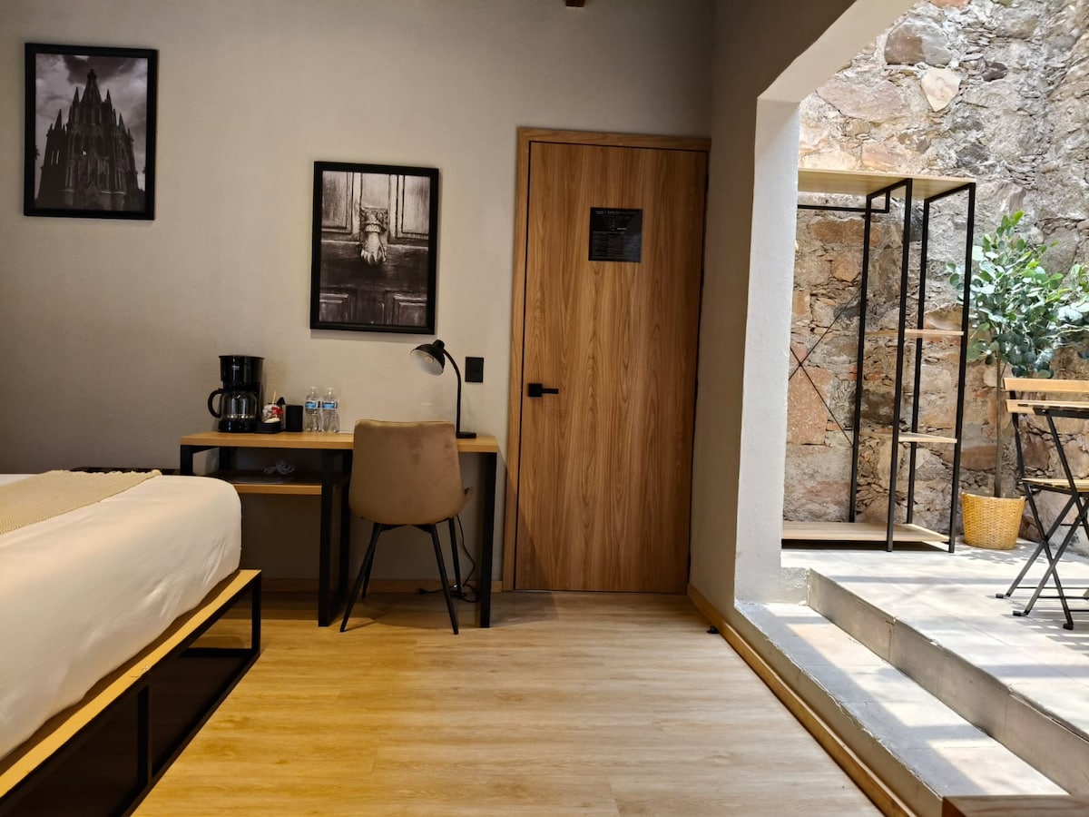 Casa Dos Cuervos din centrul orașului Querétaro. Bucură-te de o experiență unică în apartamentul nostru proiectat de un studio de design interior. Are un pat matrimonial, aer condiționat, o chicinetă utilată și o baie independentă. La etaj vei găsi un apartament spațios cu pat matrimonial, aer condiționat, TV și zonă de birou de acasă. Întotdeauna curat și gata să-ți ureze bun venit. Descoperă orașul Querétaro ca un localnic într-un spațiu exclusivist și confortabil.