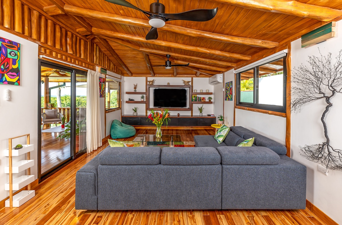 Nouvellement rénovée. Séjournez dans une superbe villa avec piscine à débordement privée, située dans une communauté sécurisée, proche des plus belles plages du Costa Rica. Entièrement rénovée en 2025, elle offre confort moderne et vue imprenable. • 2 chambres climatisées avec salles de bain privées • Espace ouvert avec cuisine équipée et salon cosy • Salle à manger extérieure pour admirer des couchers de soleil spectaculaires • Wi-Fi, alarme et parking clôturé