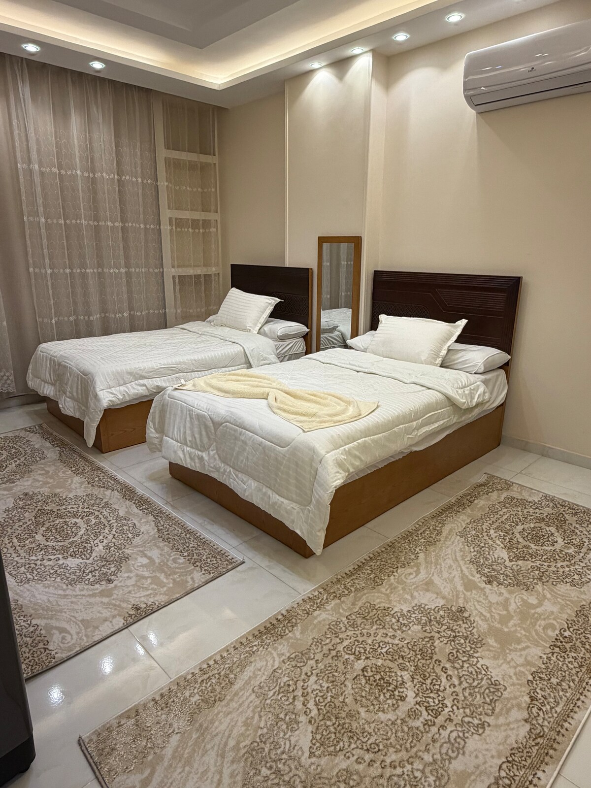 Un apartament elegant de hotel, mobilat cu o lenjerie de pat de hotel de lux și prima reședință, situat în inima orașului Mansoura, pe strada principală Al Jalaa, și la câțiva pași de poarta Universității Mansoura. Apartamentul este format din două dormitoare confortabile, un lounge, o bucătărie completă și o baie curată. Ideal pentru șederi zilnice sau lunare pentru vizitatori, studenți sau călători în interes de serviciu sau tratament