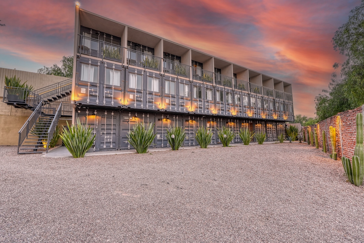 Hospédate en un loft boutique único en México, creado con contenedores marítimos bajo el innovador diseño de Container Living. Una propuesta ecológica y sofisticada que combina arquitectura moderna con todas las comodidades que mereces: Aire acondicionado para tu confort Estacionamiento privado sin costo vistas a la ciudad Conexión a las principales avenidas de Querétaro Ideal para quienes buscan una estancia exclusiva en un espacio auténtico, donde el diseño y la comodidad se encuentran.