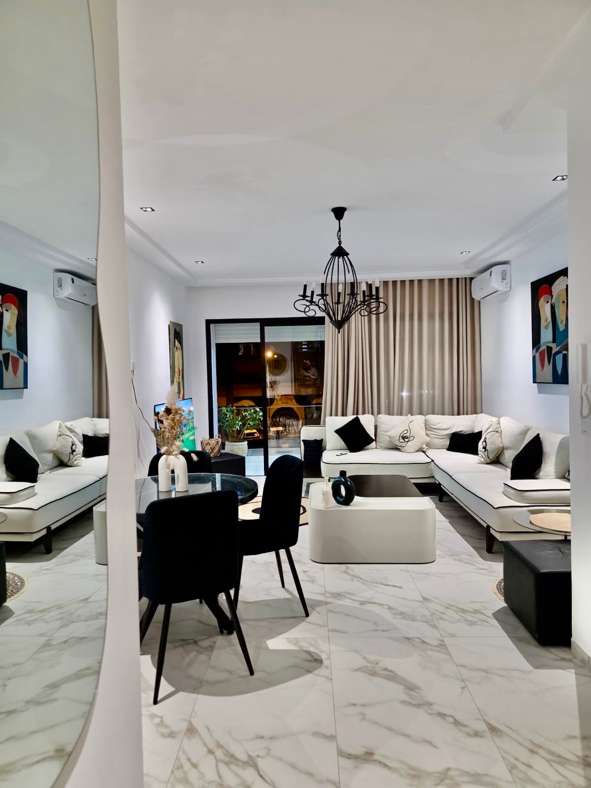Situat într-un cartier nou, aproape de toate facilitățile, acest apartament unic este un adevărat tribut adus know-how-ului artizanilor locali, care au contribuit cu toții la îmbunătățirea acestui spațiu. Într-o atmosferă caldă și primitoare, vei avea posibilitatea de a experimenta pe deplin autenticitatea și bogăția culturii artistice tunisiene, incomparabile în felul său. Fiecare detaliu a fost gândit cu atenție pentru a asigura o ședere de neuitat.