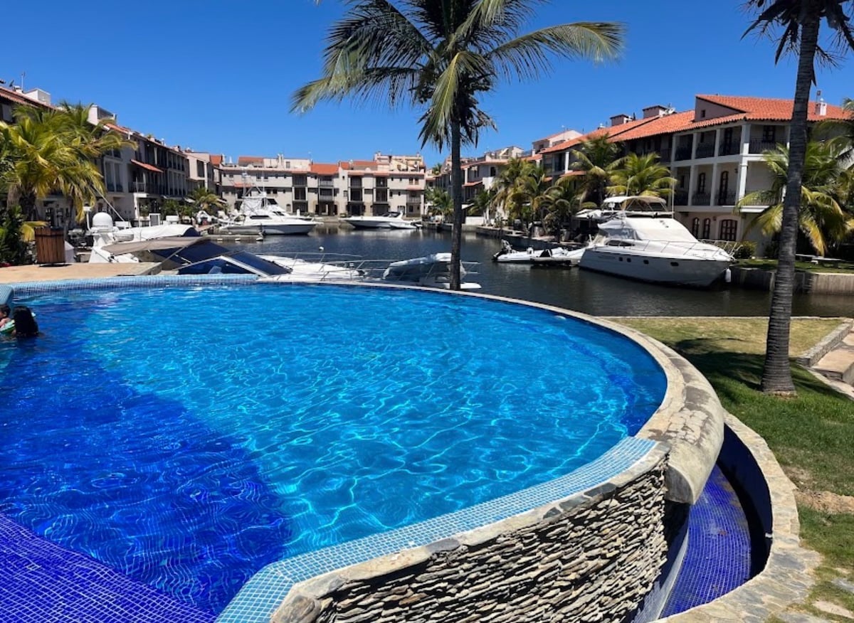 Trezește-te cu briza canalului în această vilă exclusivă cu 3 dormitoare, concepută pentru confort maxim. Aici te vei bucura de liniștea unui mediu nautic unic, de securitate la nivel înalt și de spații impecabile, concepute pentru o ședere de lux de neuitat.” Nu există nimic mai bun pentru vacanțe sau călătorii de afaceri decât un complex care are mai multe piscine, zone verzi, parcuri, terenuri de tenis, baschet, racquetball, precum și acces la canale și foarte aproape de plajele din Lecheria.