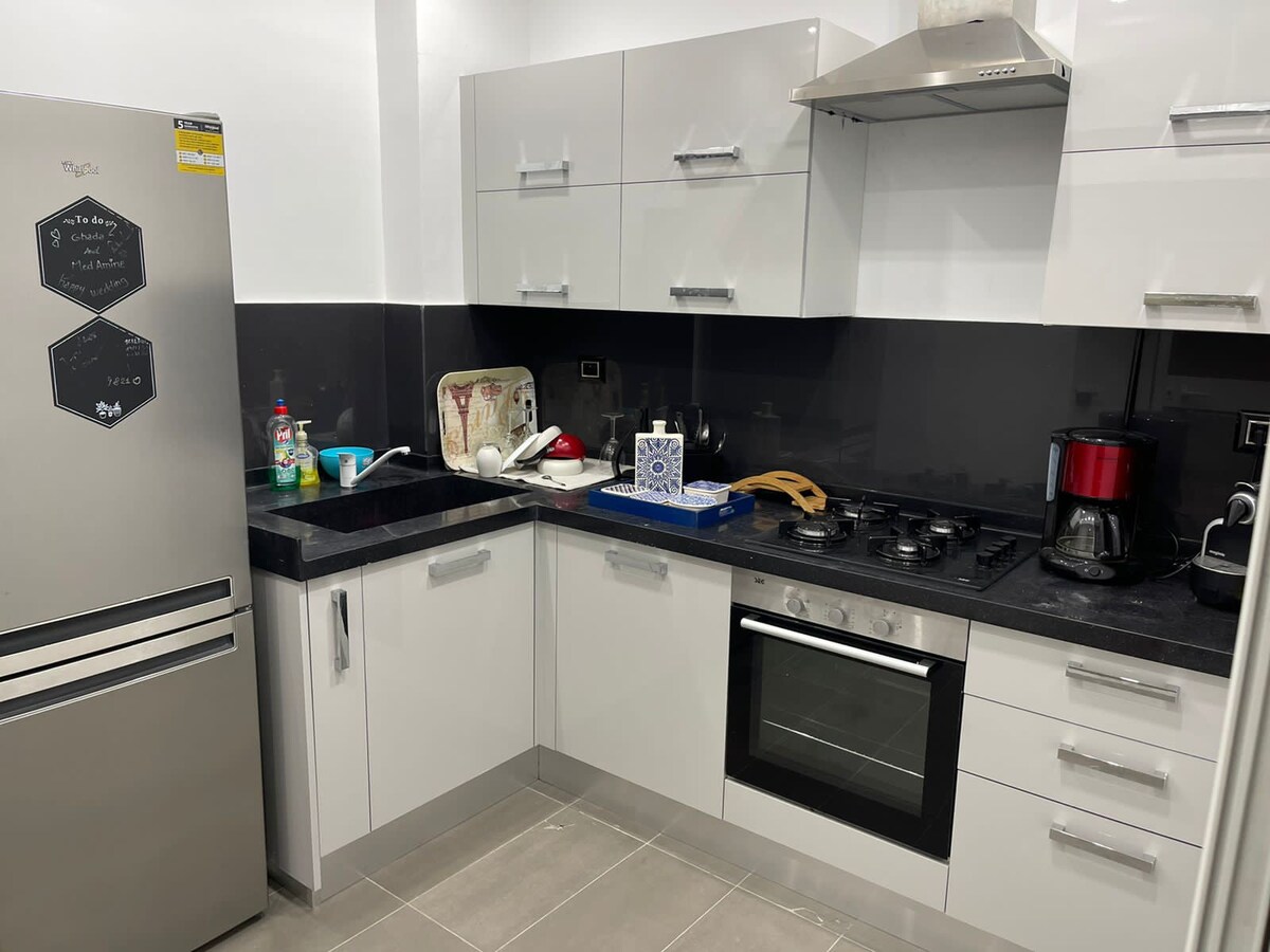 Ce logement paisible offre un séjour détente pour toute la famille. Découvrez ce charmant appartement idéalement situé à Tunis, à seulement quelques minutes de l’aéroport et du centre-ville, cet espace vous offre tout le confort nécessaire pour un séjour agréable La kitchenette dispose de tout l'équipement nécessaire (assiettes, verres, couverts, réfrigérateur, micro-onde, cuisinière, cafetière simple, casseroles, ustensiles, lave-linge, fer et table à repasser et plus encore.
