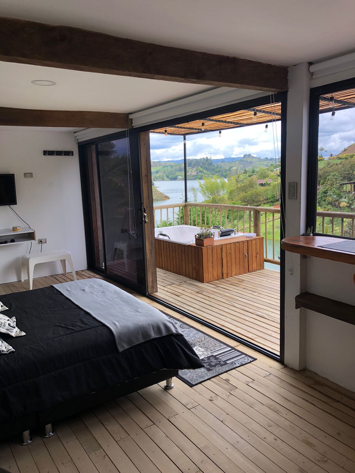 🥘 Room service with local cuisine made from fresh ingredients grown in our garden and prepared on the spot 🍳 Breakfast included 🌐 High-speed fiber WiFi to stay connected 🛁 Private jacuzzi with stunning lake view 🔥 Gas fireplace for cozy nights 🚣♀️ Kayak and paddle board included to explore the lake 🐦 Birdwatching right from your terrace 📍 Located across the lake from one of the region’s most iconic estates, only 15 minutes from La Piedra del Peñol and 18 minutes from Guatapé.
