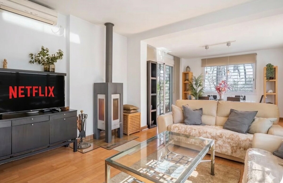 Renovată frumos de designeri de interior, această casă cu două etaje este situată în inima orașului Alcalá de Guadaíra. Are o piscină privată cu apă sărată pe acoperiș și o terasă cu un solar. Casa oferă 3 dormitoare, 4 băi, 2 livinguri, 2 bucătării și o curte interioară cu o fântână arteziană și plante. - Dormitor 1: pat de 180x200 cm - Dormitorul 2: pat de 160x200 cm - Dormitorul 3: două paturi de 80x200 cm Locuința este dotată cu aer condiționat și Wi-Fi și este situată într-un cartier liniștit.