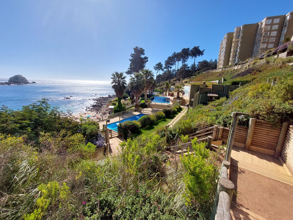 Loc frumos în mijlocul naturii, cu o vedere frumoasă la ocean, grădini frumoase cu spații comune, cum ar fi gutui, terase, mese, care permit interacțiunea cu alți oaspeți. În acest loc te poți bucura de apusuri de soare frumoase, te poți odihni plăcut și poți fi aproape de plajă și de locuri de interes, cum ar fi Casa Museo de Pablo Neruda, la doar trei kilometri distanță, în plus față de Rio QUEBRADA DE CORDOVA cu un circuit de drumeții.