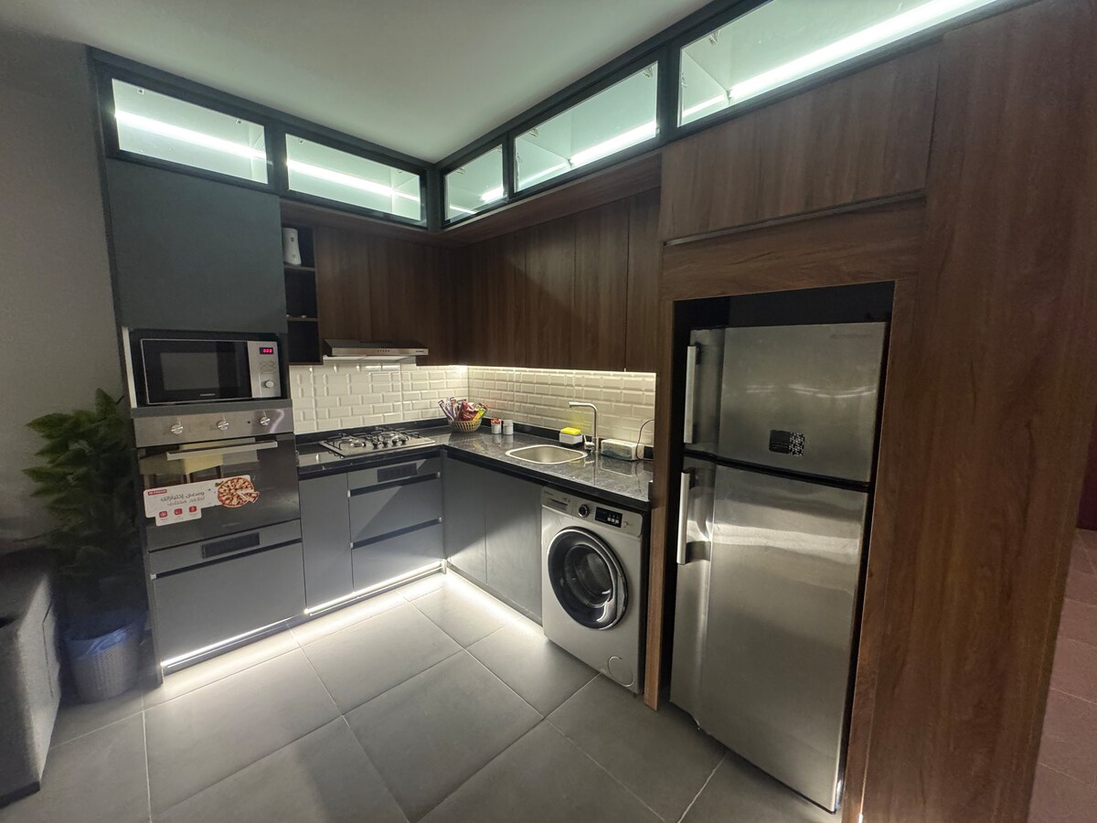 Bine ai venit în apartamentul nostru modern de hotel 3BR (170 mp) de la West Somid Developments! Conceput pentru familii, grupuri și profesioniști. Bucură-te de Wi-Fi 5G, 4 televizoare inteligente, obloane electrice și mobilier nou. Securitate non-stop, hol pentru oaspeți, livrare de mâncare și curățenie opțională. Curățenie săptămânală gratuită. Oaspeții se pot bucura, de asemenea, de un lounge comun pe acoperiș — excelent pentru seri de film, seri relaxante și timp cu familia. La doar câteva minute de Mall of Arabia și de locurile de top din Zayed! ما نقدر نستضيف أي ثنائي عربي غير متزوج في نفس الشقة.
