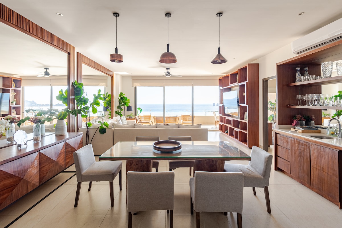 “Our stay in Cabo at this Airbnb could not had gone better! Gorgeous, cozy and comfortable.“ ✔ Enjoy our new ocean-view condo, perfect for an unforgettable vacation. ✔ Relax on the main terrace with dining area and grill, or on the private terrace in the master bedroom. ✔ Located 3 min walking from Costco, 4 min from Plaza Novva, and only 5 min driving to Medano Beach. ✔ Offers private entrance, parking, beach chairs, umbrellas, 3 bedrooms, 3 bathrooms, 4 TVs, gym, and a large pool.
