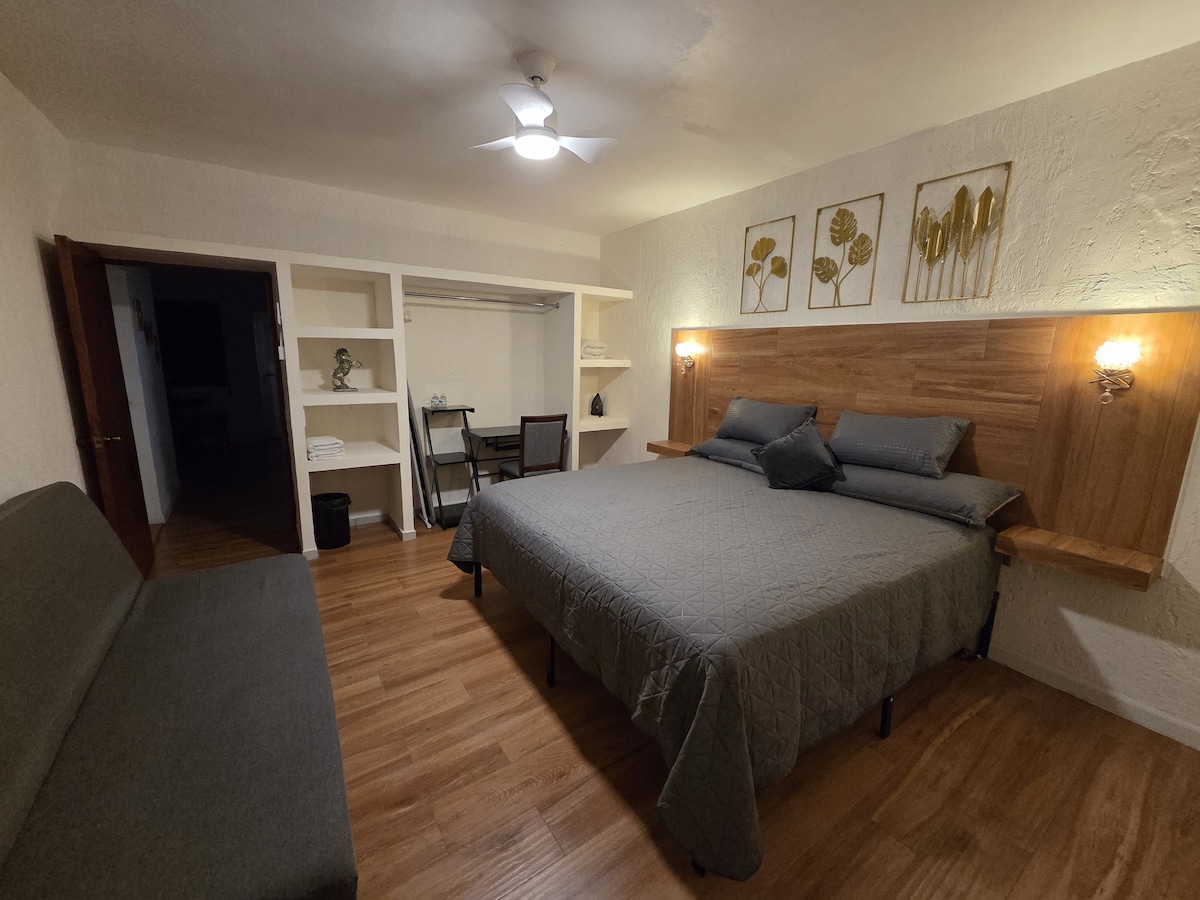 Bucură-te de această cazare cu o poziție excelentă, la câteva străzi de Bulevardul Tepic-Xalisco, lângă UAN, spitale, Parque la Loma. (4 min🚗) 🌳 NETFLIX ȘI PRIMEVIDEO GRATUIT 🤩 🍿 🎥 Apartament cu un dormitor cu un pat matrimonial, aer condiționat❄️, un birou, o canapea extensibilă, o sufragerie și o bucătărie dotată cu toate ustensilele necesare